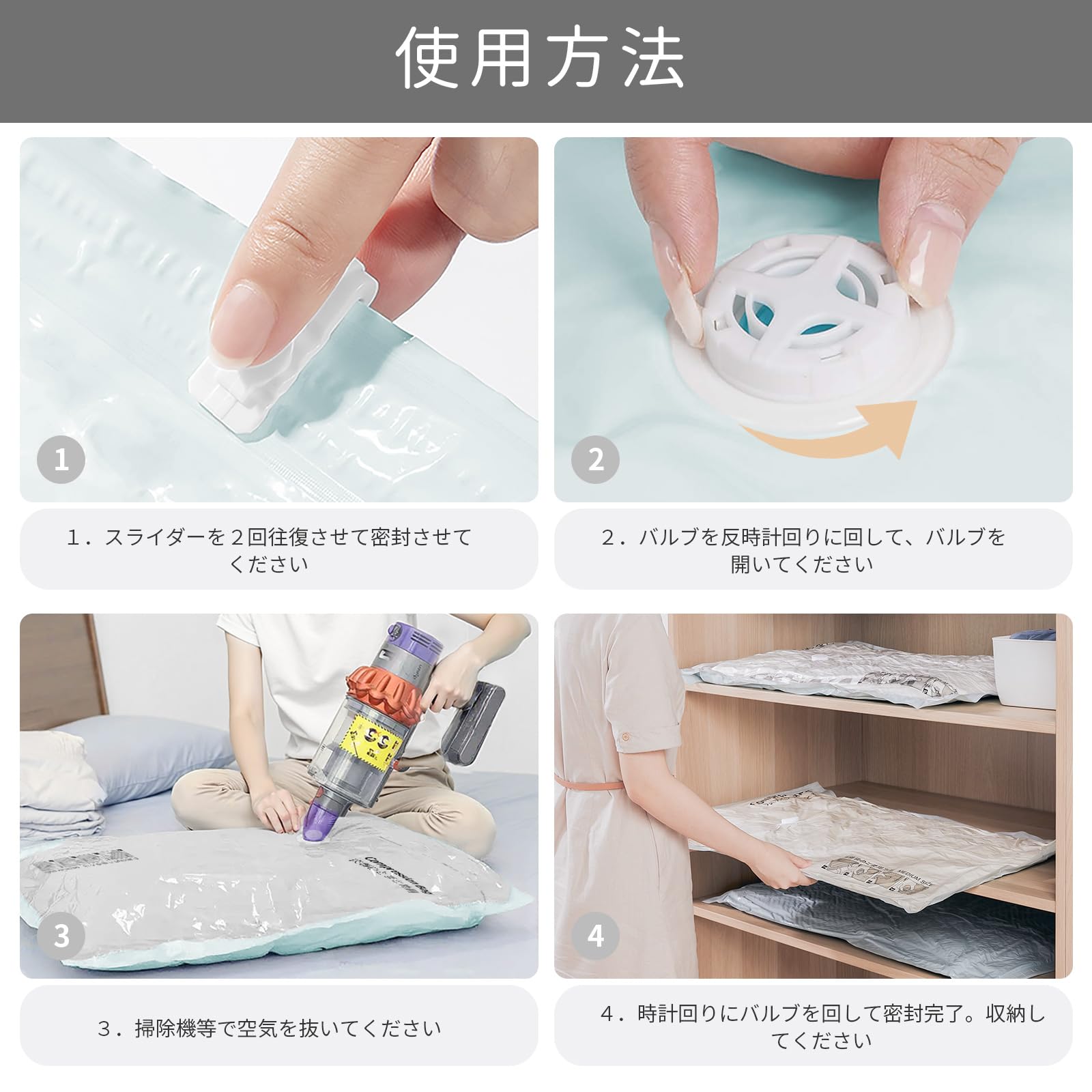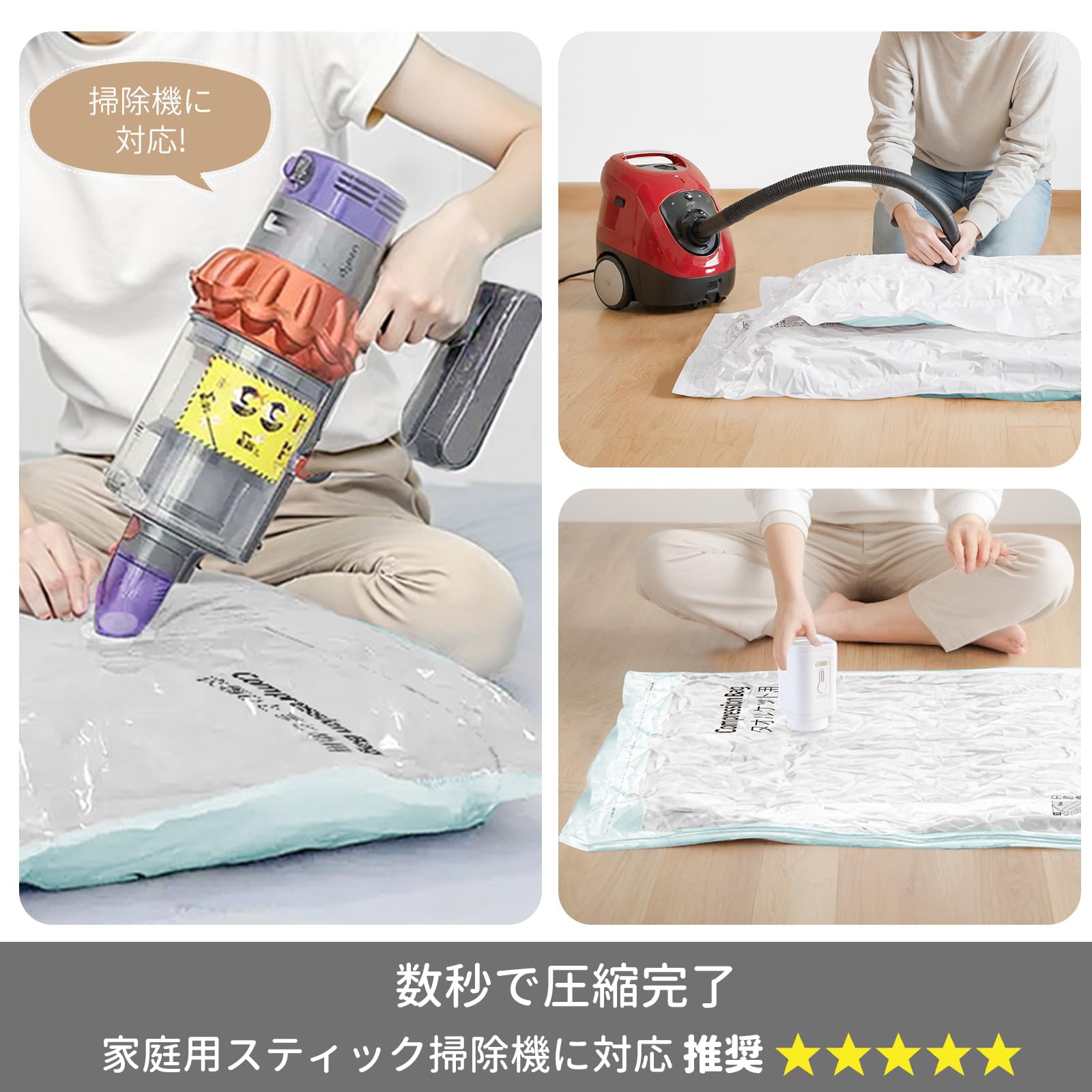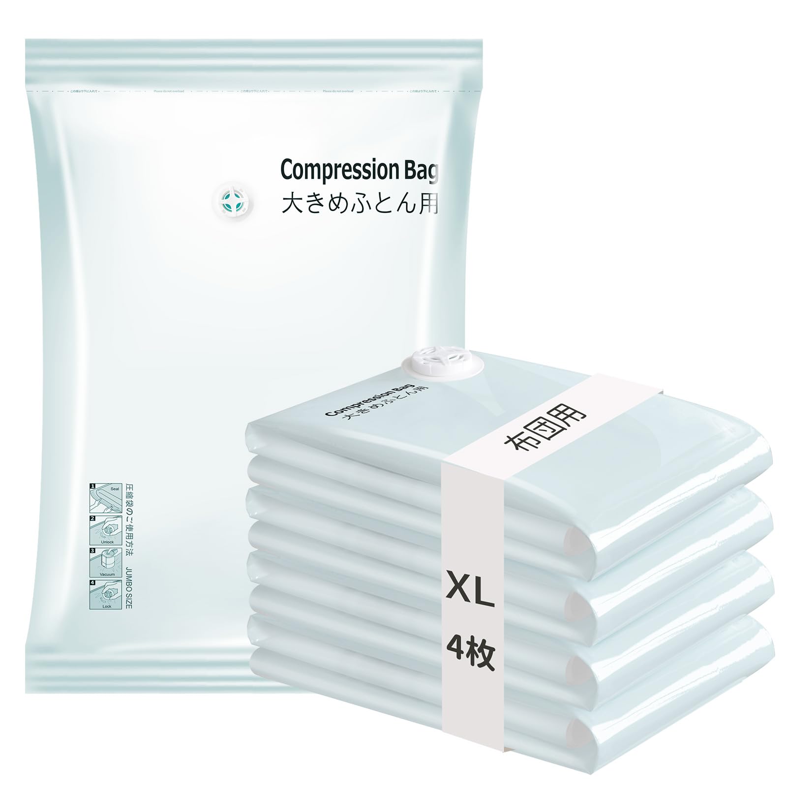 布団圧縮袋 真空収納 特大サイズ 4 点セット120×80cm×4 掃除機対応 省スペース・難損傷 ほこり防止・湿気防止・カビ防止・ダニ防止 厚手リピート使用 厚布団向け 自宅/季節替え用