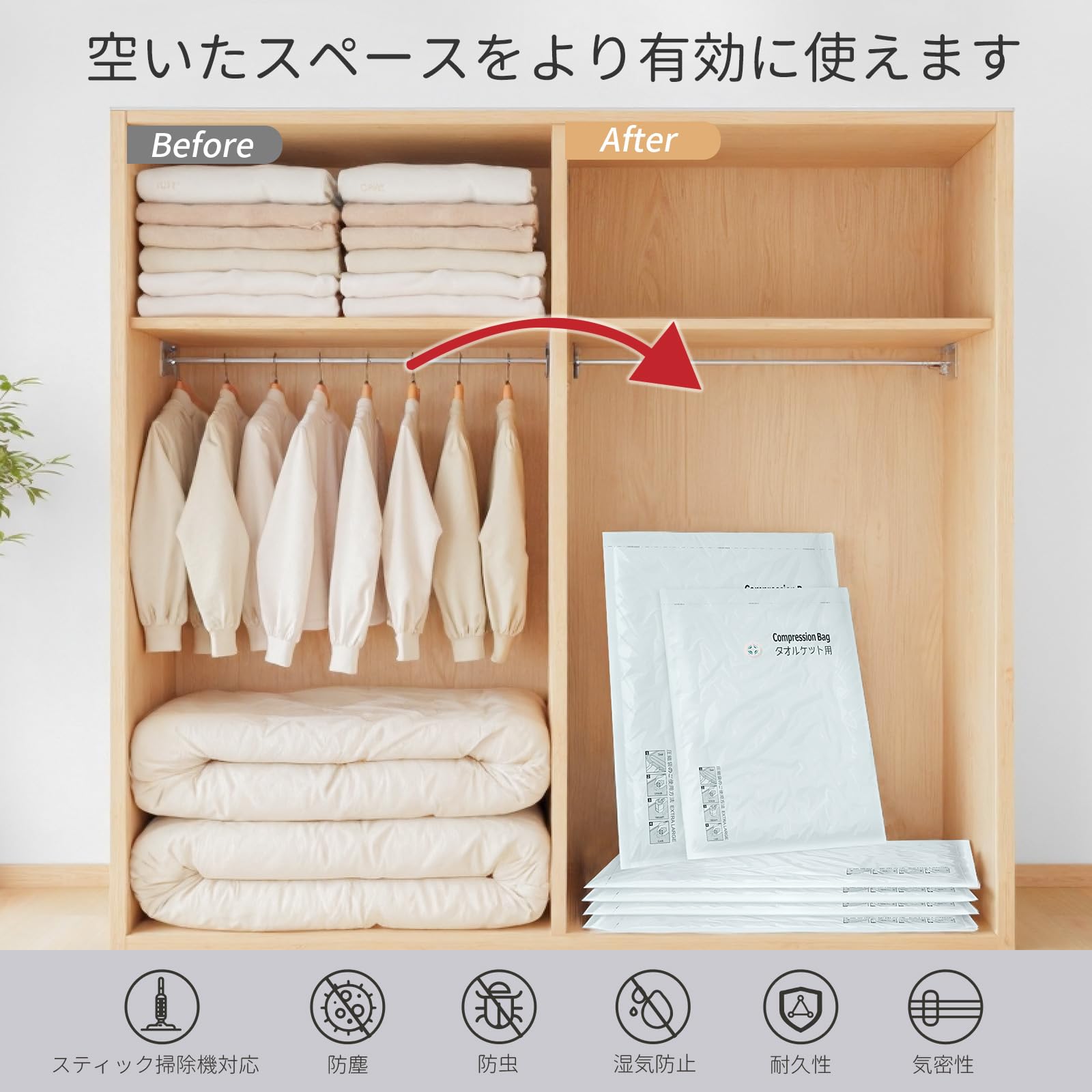 Yeahhom圧縮袋真空パック 6パック(大、60 cm×80 cm)衣類圧縮袋 旅行用、毛布、枕、布団、移動の防水、湿気防止、カビ防止圧縮袋