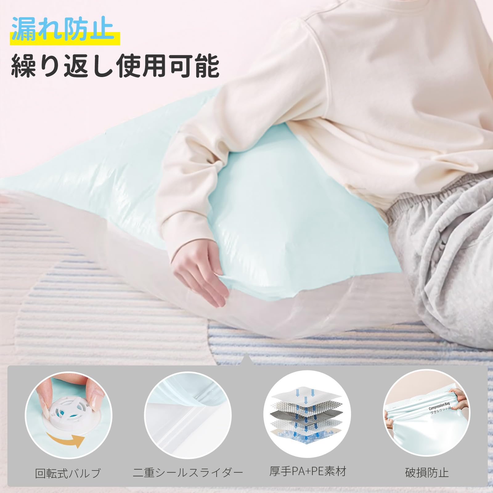 Umimile 圧縮袋 6枚セット 80×56cm 掃除機不要 電動ポンプ付き 衣類圧縮袋 布団圧縮袋 厚手 高密封 漏れなし 羽毛布団/毛布/収納 掃除機対応 防湿・防塵・防臭・防ダニ (電動ポンプあり, L6枚)