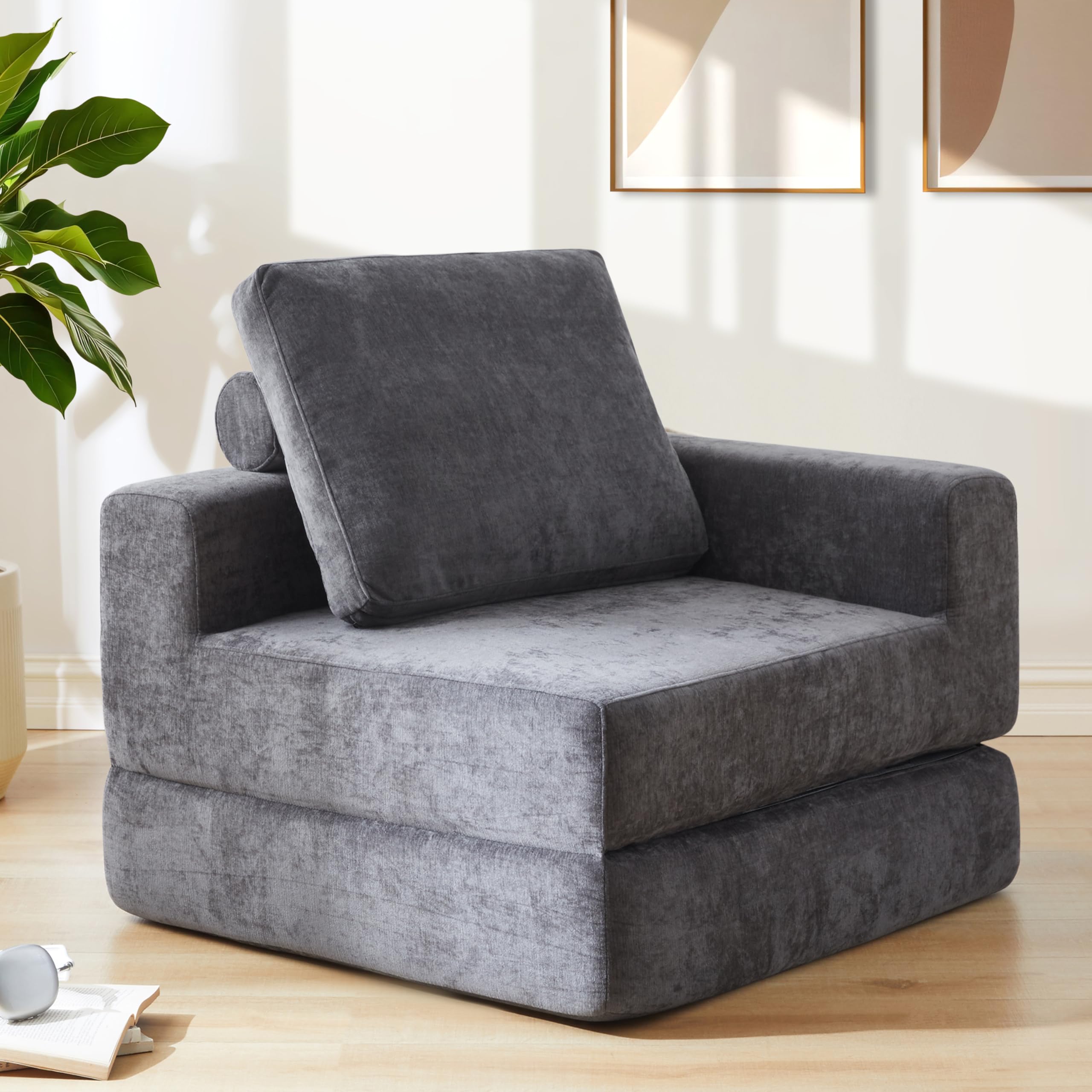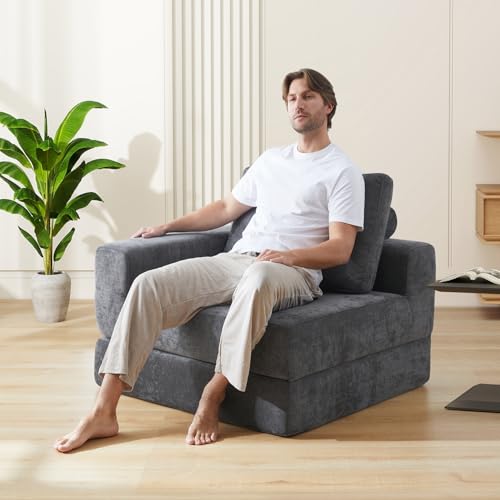 IKIFLY ソファベッド 2人掛け フロアソファ 6WAY 低い座椅子 折りたたみソファ ローソファ 省スペース 多機能 こたつ用 リビング 寝る 一人用 コンパクト クッション付き ふわふわ おしゃれ 1人暮らし 圧力分散 リクライニング 1人掛け 組み立て不要(幅120x奥行67x高さ46cm, ブラックグレー)