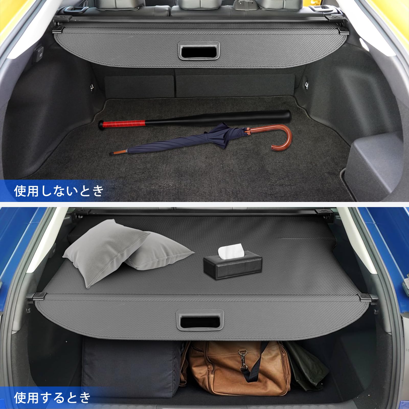 Virauto トヨタに適合 新型 プリウス 60系 トノカバー ロールシェード PRIUS60 2023年1月~現行 ZVW60 ZVW65 MXWH60 MXWH65 プライバシー 保護 車用リアボード ラゲッジ収納 車種専用設計 耐高温 荷室整理 断熱 遮光 PVC材質 撥水性 盗難防止 取付簡単 ドレスアップ 内装パーツ 1Pセット (カーボン調, 新型 プリウス 60系)