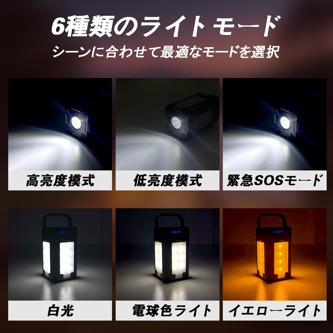 Smiling Shark LEDランタン, 【2025新登場・多機能キャンプランタン】 LEDランタン 電球色 昼白色 5つ照明モード IPX4 防水防塵 懐中電灯 Type-C充電式 小型 持ち運び便利 アウトドア用 キャンプ用 登山 夜釣り 防災 停電 緊急 非常用 お祝い日 贈り物 ギフト 日本語取扱説明書(ブラック)