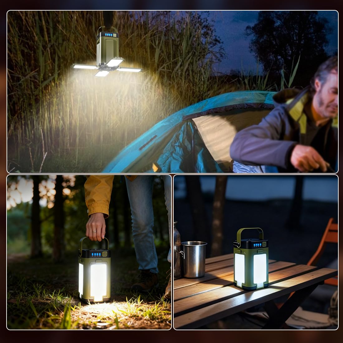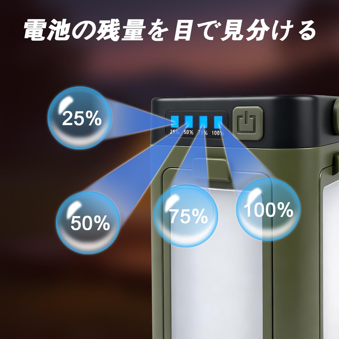 【Warsun Y61】LEDランタン キャンプランタン 光量調節 充電式バッテリ 多機能マイクロランタン 4色切替 昼白色 電球色 ナチュラル 赤色切替 ソロキャンプ 無段階調光調色/IP45防水防塵 超軽量 お花見 アウトドア ハイキング 探検 夜釣り キャンプ 作業 停電 非常用照明 防災 (カーキ)