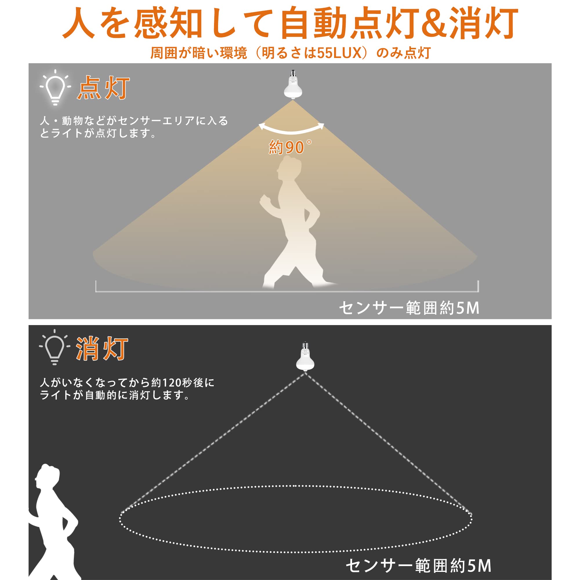 aurogeek 人感センサー電球 LED電球 E17口金 4.2W センサー照明 40W相当 電球色 500LM 2700K 廊下灯 玄関灯 自動点灯 消灯 洗面所 階段 単個