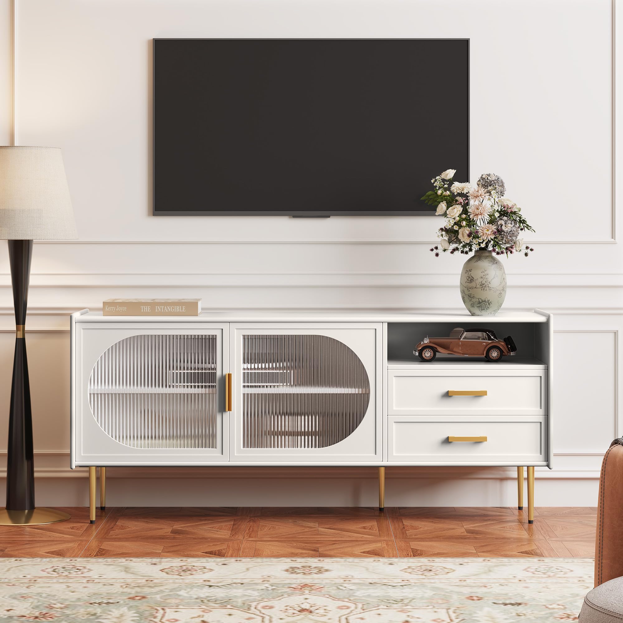 FITUEYES テレビスタンド 32-65インチテレビ対応 壁寄せ テレビ台 キャスター付き 可動タイプ 背面収納付 高さ角度調節可能 耐荷重40kg 中段棚一枚付 ホワイト オーク色 裏表両用 F03W2464N