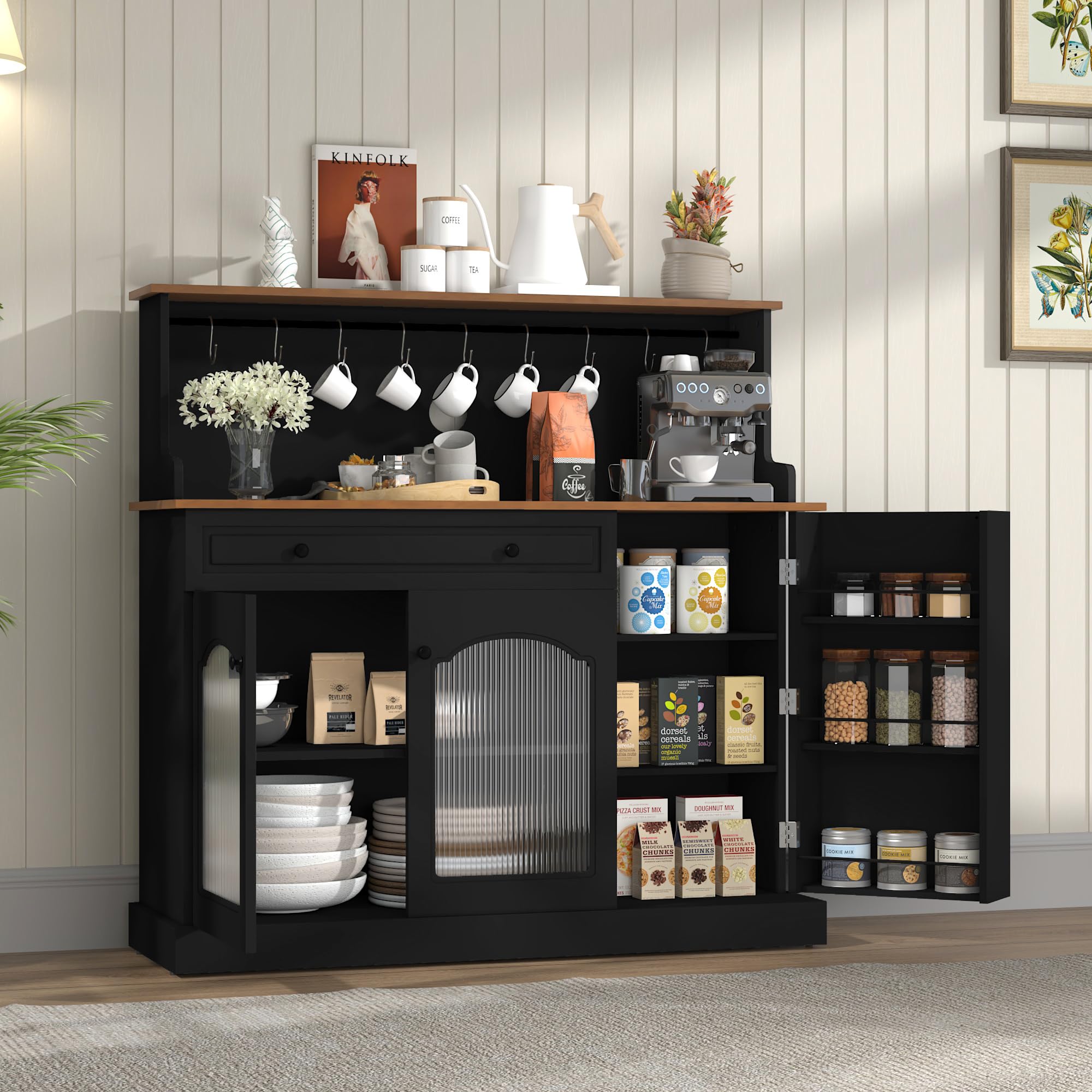 HOLTICO(ホルティコ) 食器棚 レンジ台 棚 キッチンカウンター (ブラック) [並行輸入品]