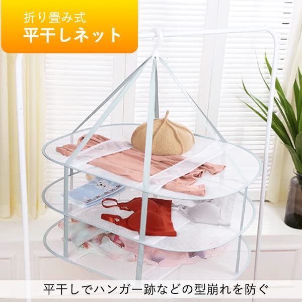 【型崩れしない】平干しネット 大きめ 3段 セーター ニット 枕 洗濯物 折り畳み 物干しネット ハンガー ぬいぐるみ