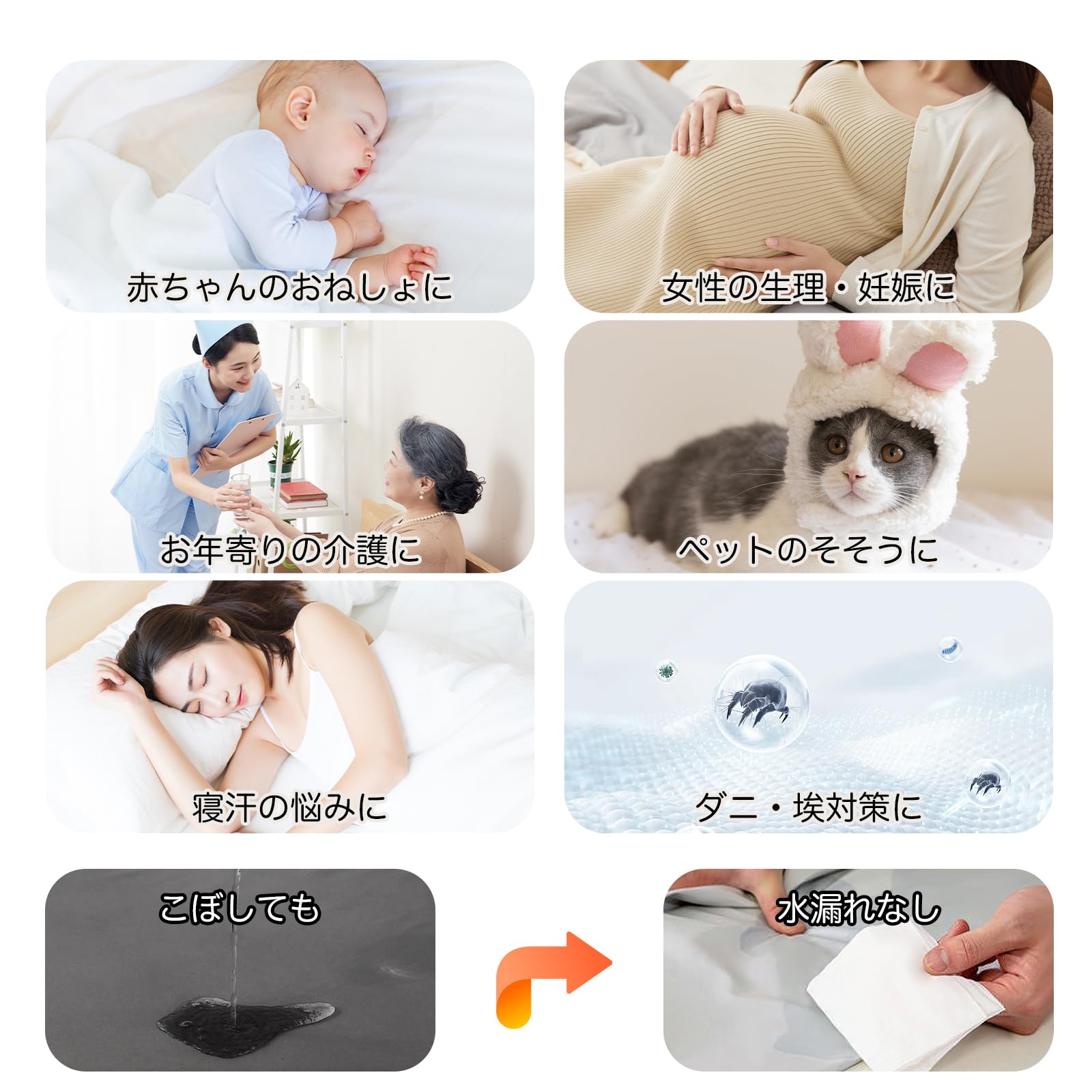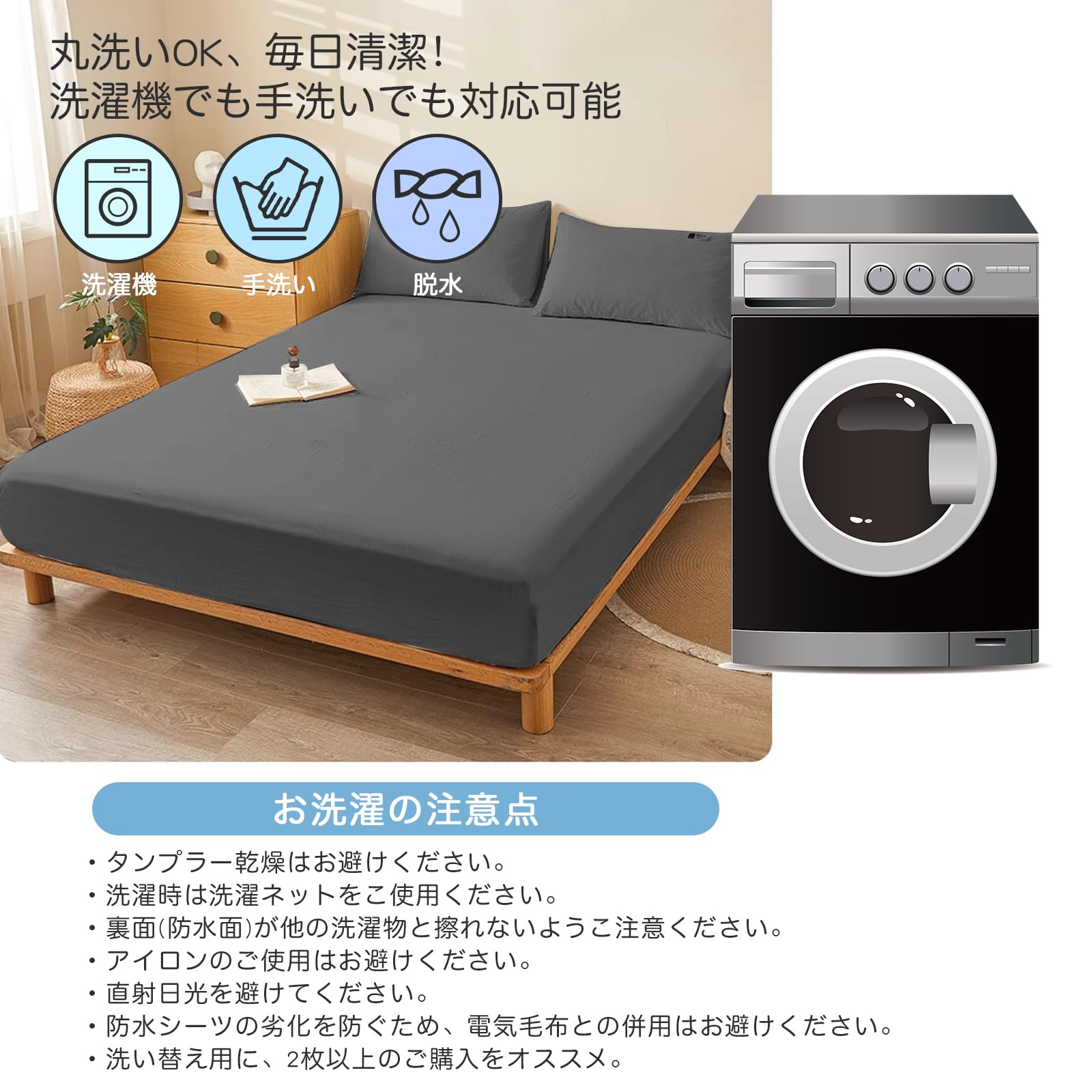 PRETYDAY ボックスシーツ 防水シーツ 2025 高密度生地 マットレスカバー 五面防水 吸水速乾 シングル セミダブル ダブル クイーン ベッドカバー 通気性 洗える 介護用 シーツ 防ダニ 抗菌 防臭 全周ゴム付き ズレ防止 赤ちゃん 大人用