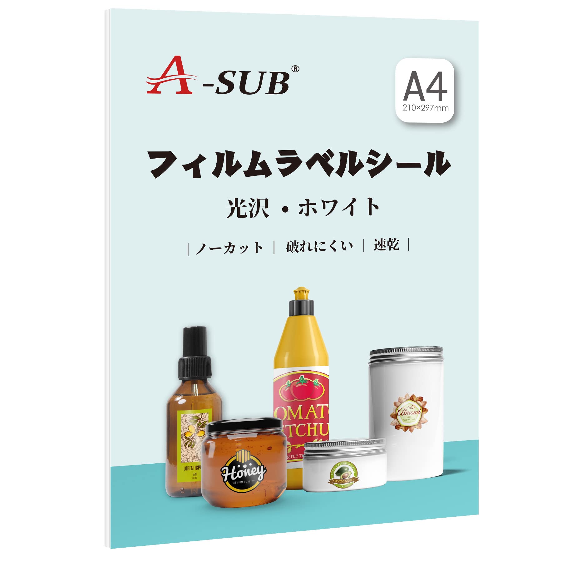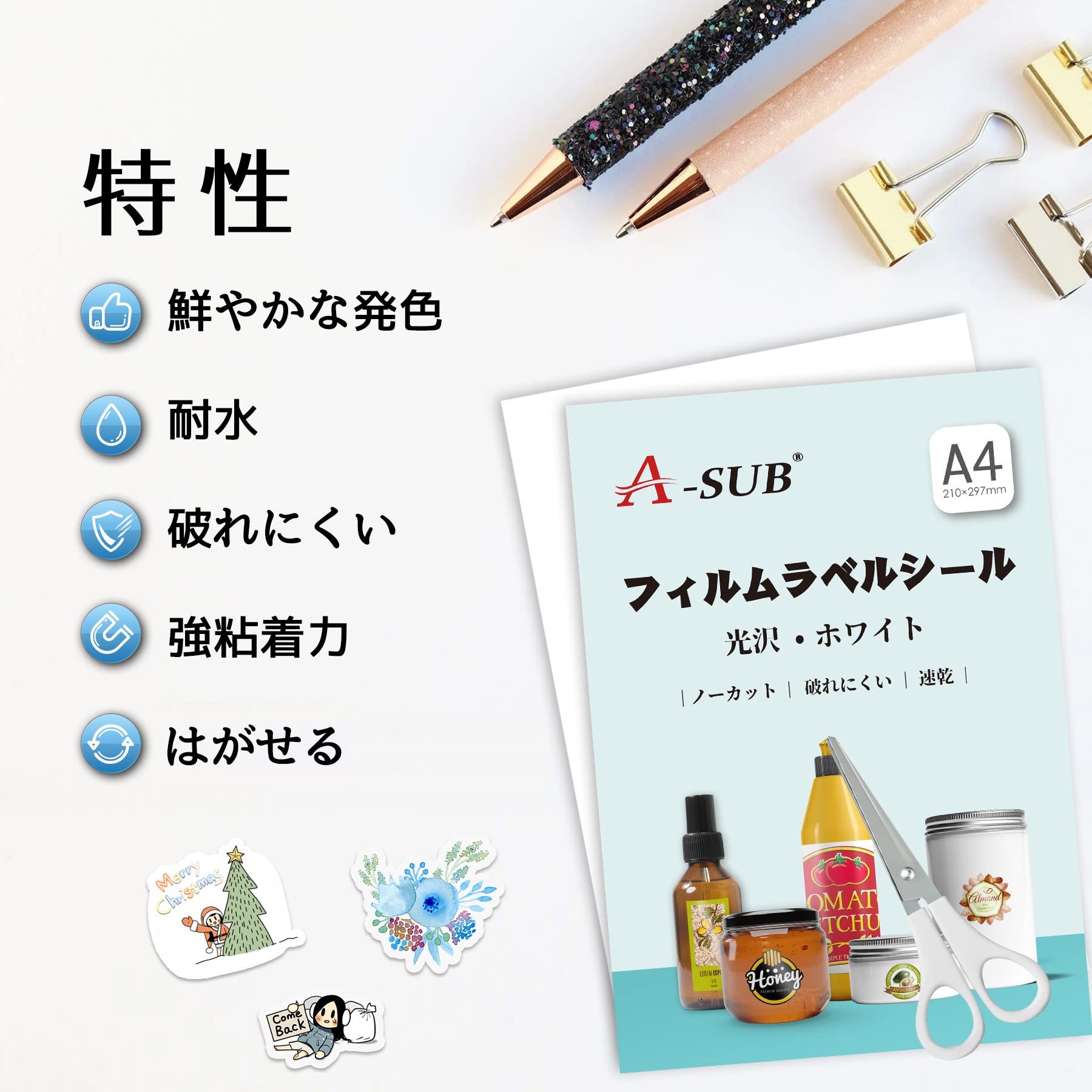 A-SUB ラベルシール 耐水 光沢 インクジェットフィルムラベル 防水シール 貼ってはがせる A4ノーカット 10枚 手作りステッカー ホワイト