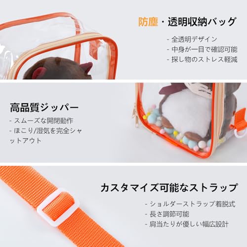 痛バッグ ぬいポーチ 10cm/15cm/20cmサイズ対応 推し活ぬいポーチ 人形の保管場所 全透明 PVCケース 防水・防塵 ジッパー式 ポンポンボール&キーホルダー付 (10cm対応)