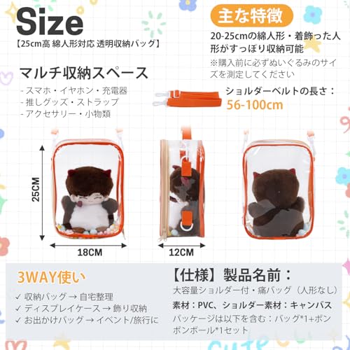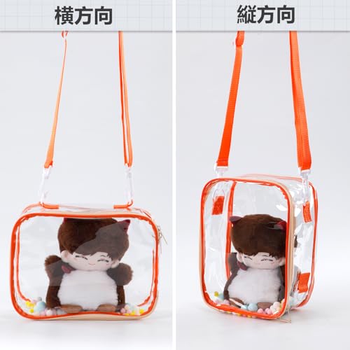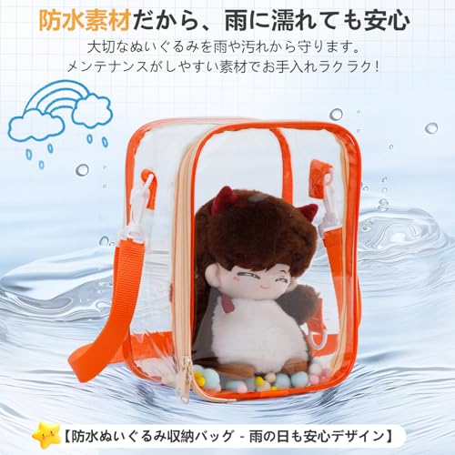 GNEGNI 痛バッグ ぬいぐるみポーチ PVC 全透明 大容量 見せバッグ 2つの携帯方式 取り出し便利 ぬいぐるみ おしゃれ 人形入れ 20-25cm (オレンジ)