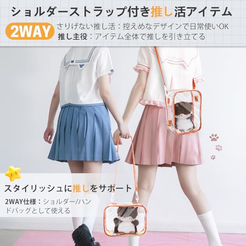 MuGaoDee ぬいぐるみポーチ 20cm ぬいポーチ 3WAY 痛バッグ ぬいぐるみ クリア 大きめ 鞄 痛バ 推し活 2体入れ 推しぬい 地雷 イベント 持ち運び 透明PVC 防塵 防水 痛バッ ミニ デコレーション バッグ 人形入れ