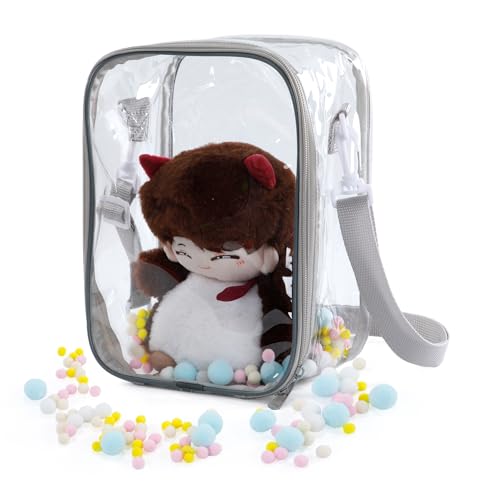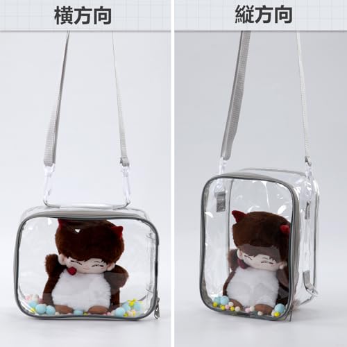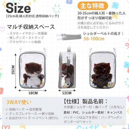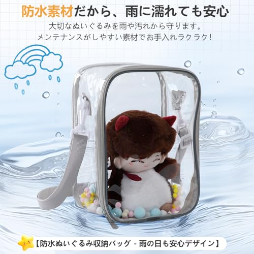 痛バッグ ぬいポーチ 10cm/15cm/20cmサイズ対応 推し活ぬいポーチ 人形の保管場所 全透明 PVCケース 防水・防塵 ジッパー式 ポンポンボール&キーホルダー付 (20cm対応)