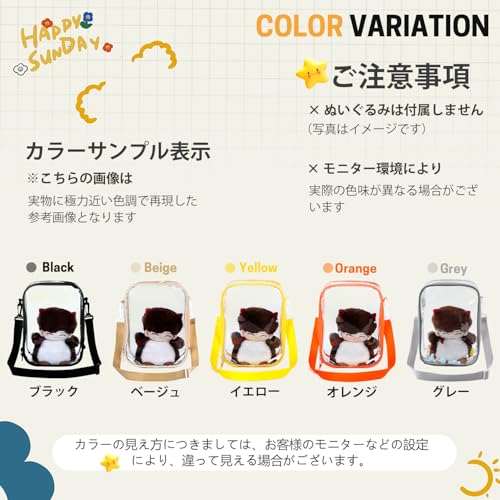 GNEGNI 痛バッグ ぬいぐるみポーチ PVC 全透明 大容量 見せバッグ 2つの携帯方式 取り出し便利 ぬいぐるみ おしゃれ 人形入れ 20-25cm (イエロー)