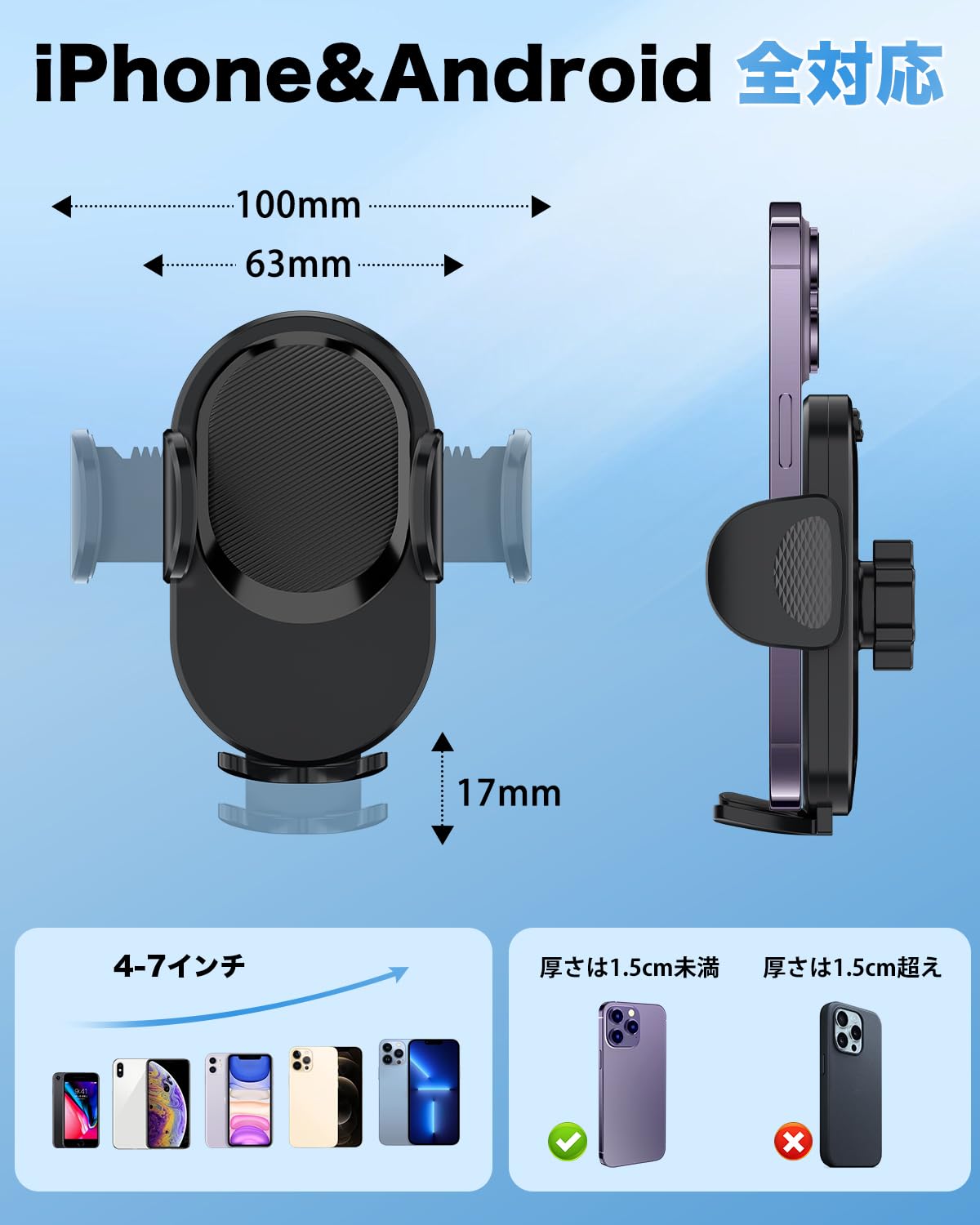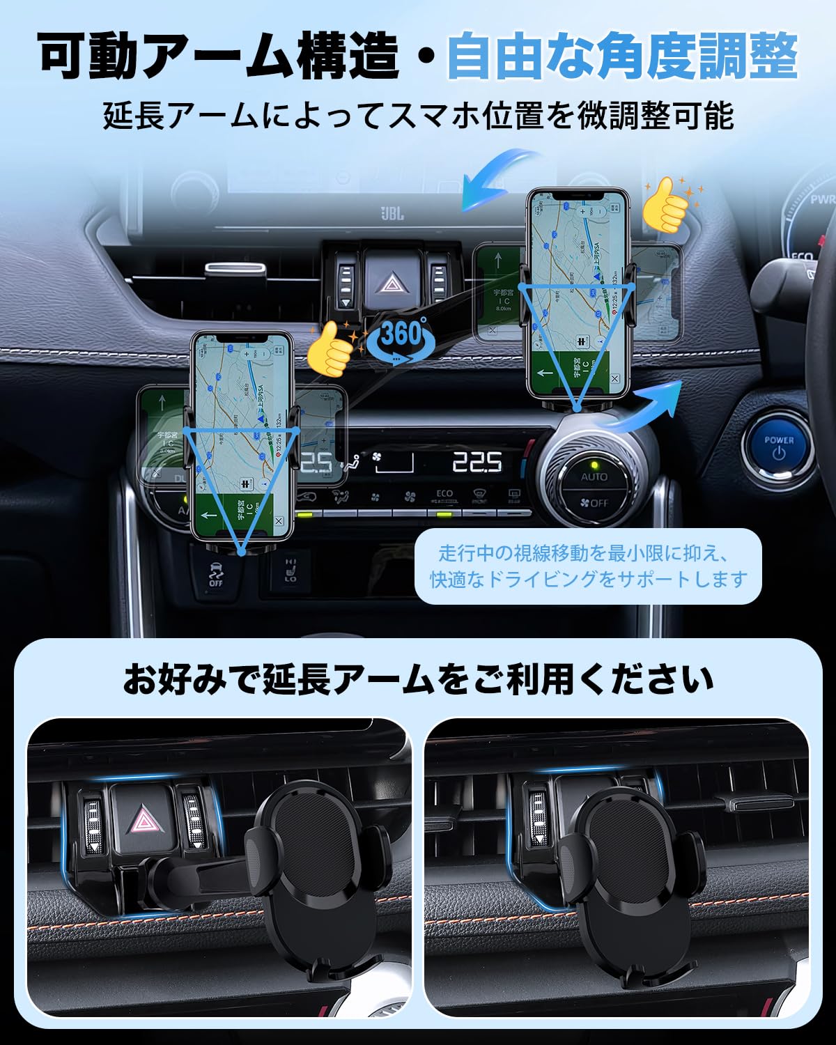 OMOTON スマホホルダー 車 スマホスタンド 車用 携帯ホルダー エアコン 吹き出し口 車載スマホホルダー 取付簡単 360度調整 片手操作 手帳型ケース対応 スマホ車用 スタンド 車載ホルダー 4-7インチ全機種対応 日本語説明書付き 安定性拔群