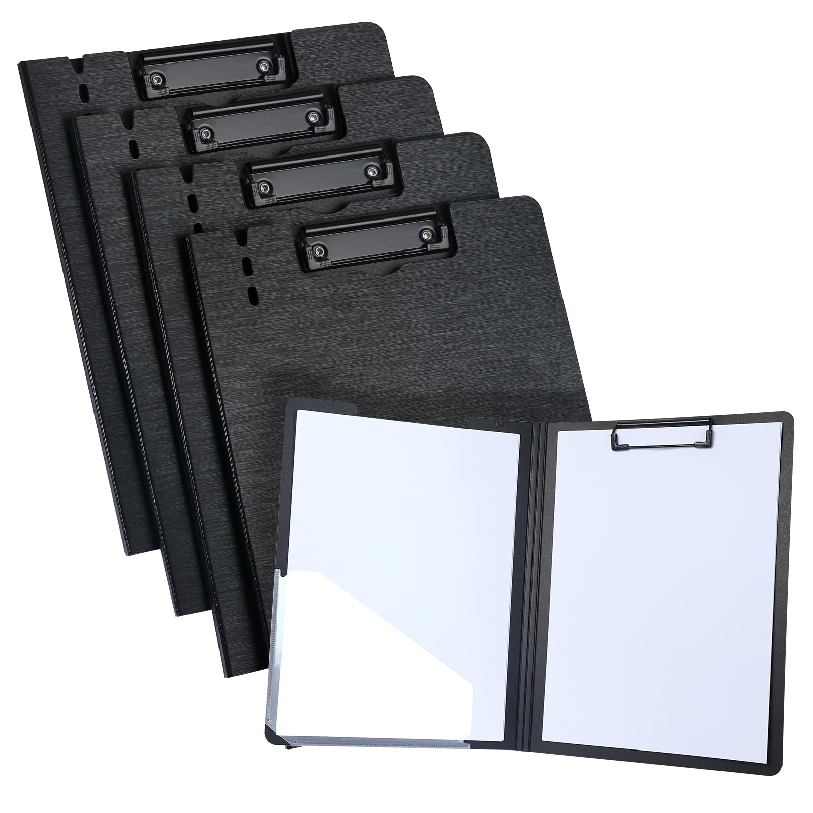 JIDHUHI A4 二つ折 クリップボードフォルダ 5個セット ダブルクリップ 防水・軽量・薄型 書きやすい 会議・ティーチング用 書類整理 ブラック (ダブル固定式クリップ, 5個セット)