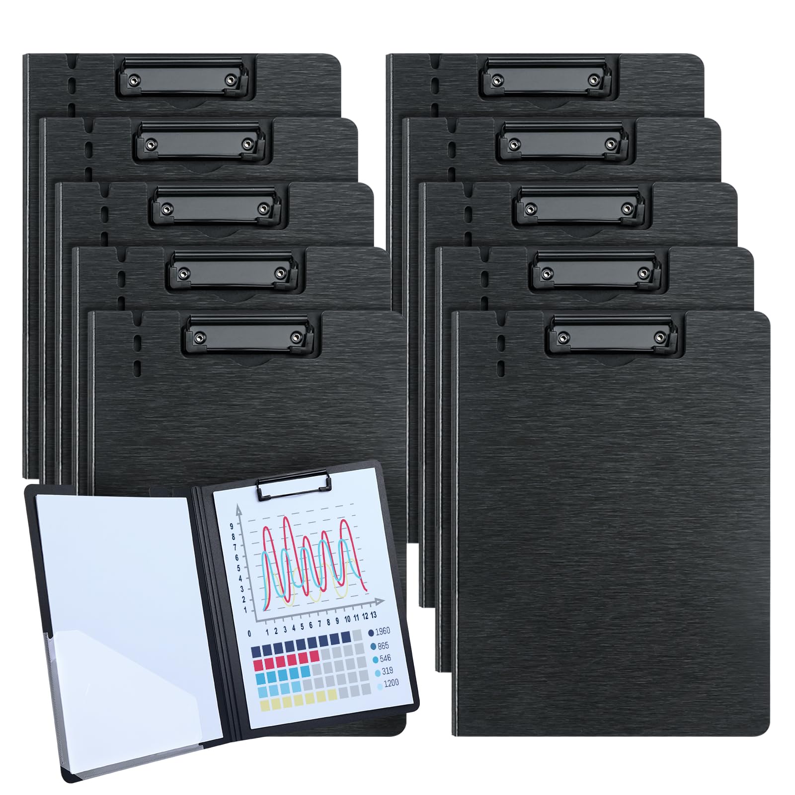 JIDHUHI A4 二つ折 クリップボードフォルダ 10個セット クリップ 防水・軽量・薄型 書きやすい 会議・ティーチング用 書類整理 ブラック (单固定式クリップ, 10個セット)