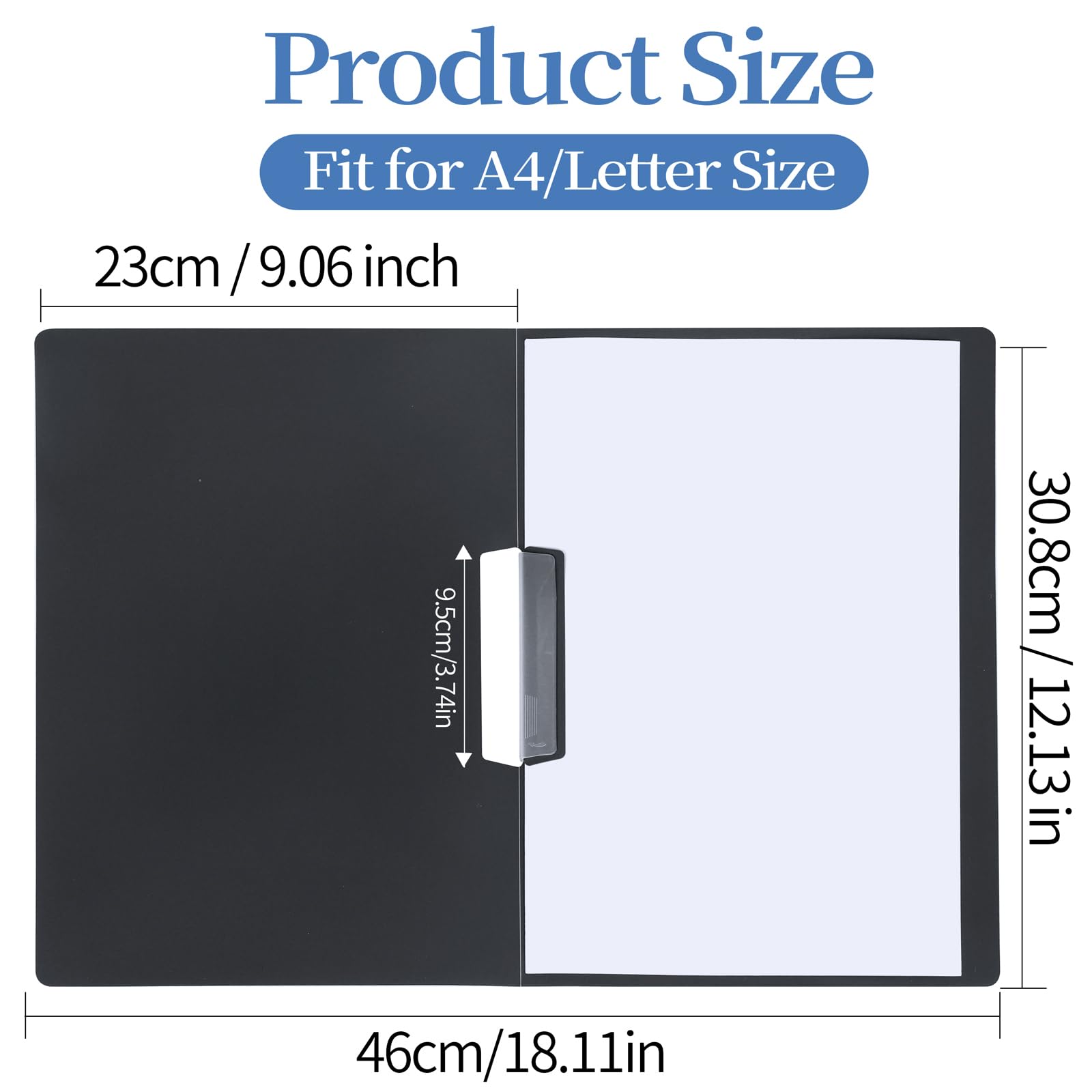JIDHUHI クリップボード 12 個入り A4 / レターサイズ対応 防水 PP 素材 90 度回転クリップ 高容量 46×30.8cm 事務所大量購入最適 経済的 書類整理・外出作業・学生団体用 (ブラック(サイドクリップ))