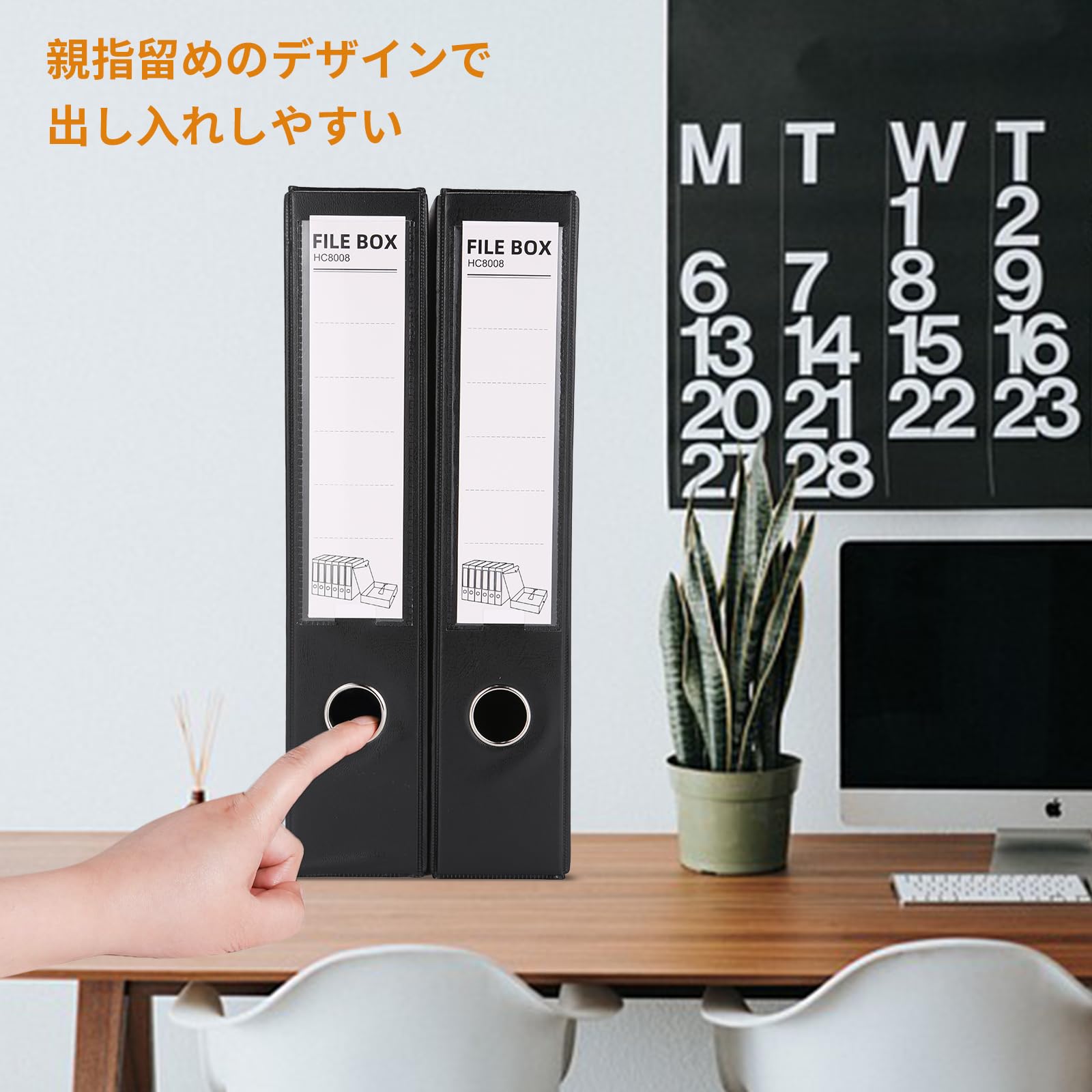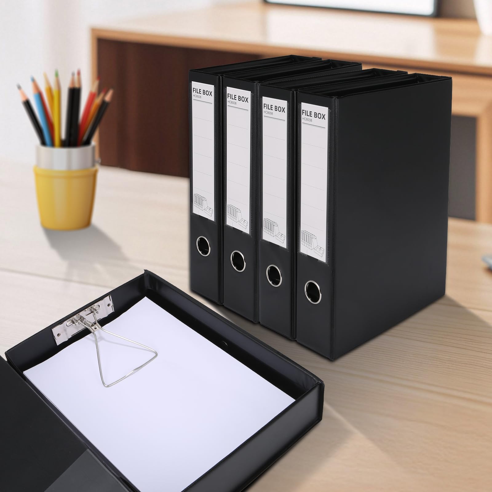 JIDHUHI A4書類整理 ファイルボックス 折りたたみ式 マグネット開閉式 紙製+PVCレザー ブラック 6.5cm 収納ボックス オフィス 学校 家庭用 6個セット 省スペース (ブラック(固定式クリップなし))