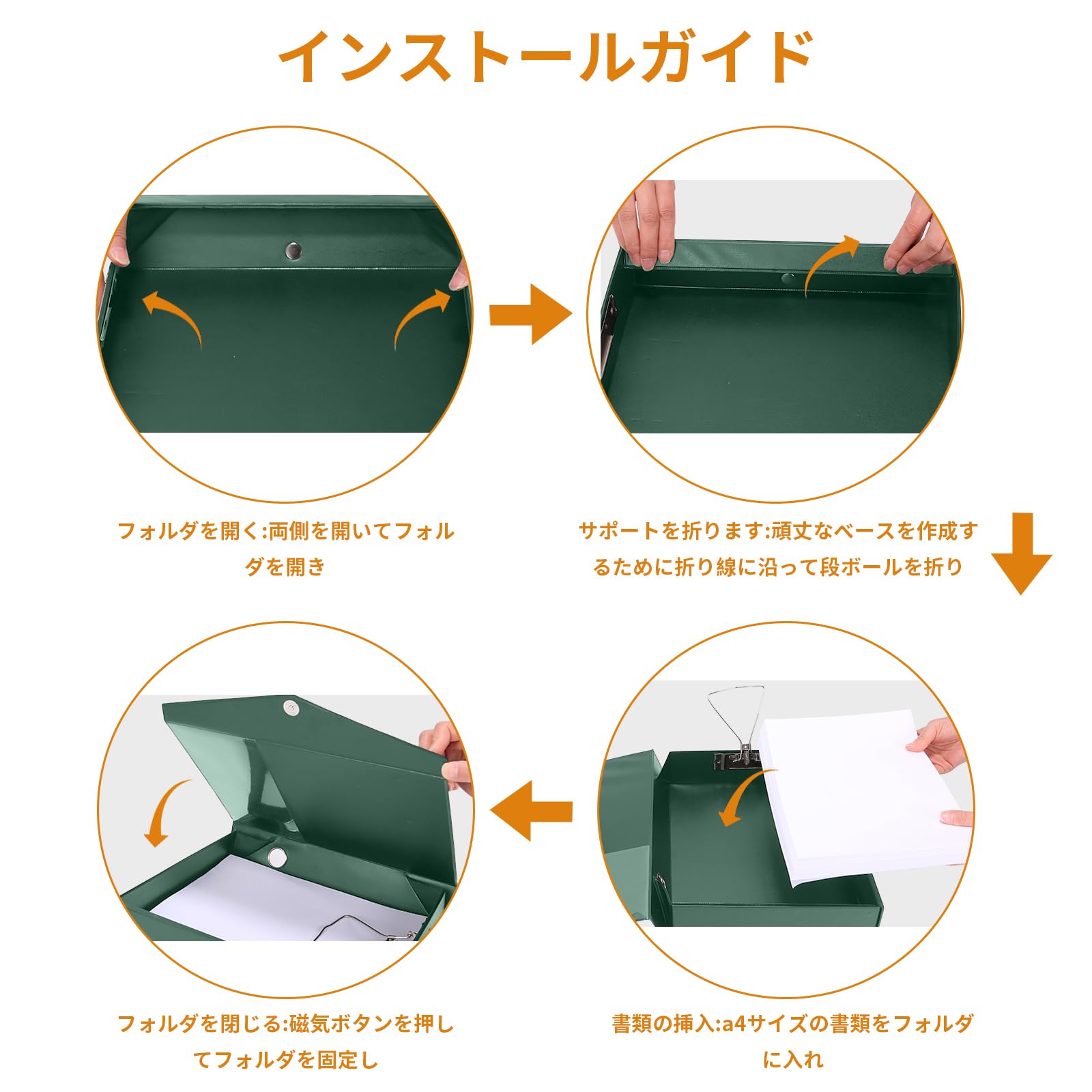 JIDHUHI A4書類整理 ファイルボックス 折りたたみ式 マグネット開閉式 4個セット 紙製+PVCレザー 省スペース オフィス 学校 家庭用 収納ボックス (厚さ88mm) (グリーン)