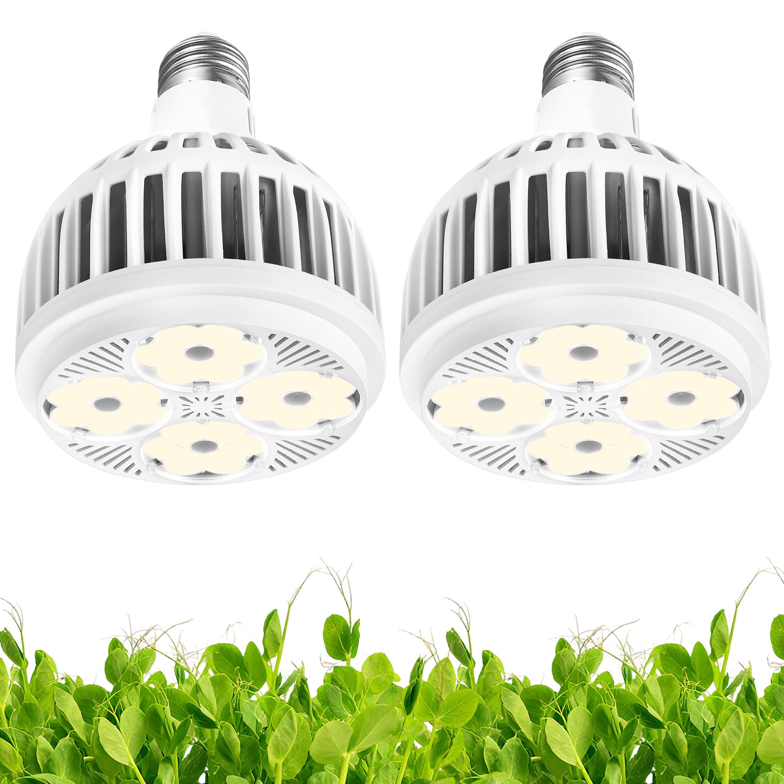 屋内植物育成ライト、LED E26ランプヘッド、5800K、フルスペクトル、放熱性、長寿命、省エネ設計、家庭菜園、2個パック