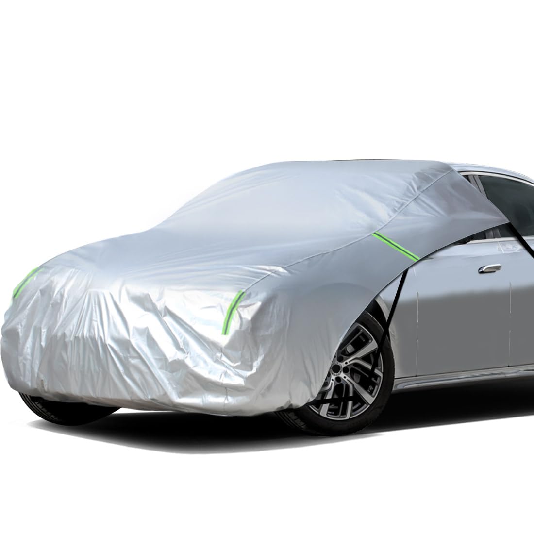 車用ハーフカバー 一体式 半分自動車カバー 210Dオックスフォード 裏起毛タイプ フロントガラス・ボンネット保護 防水 防雪 防塵 UVカット 日焼け防止 反射ストリップ付き 轎車/SUV兼用 四季対応 収納袋付き