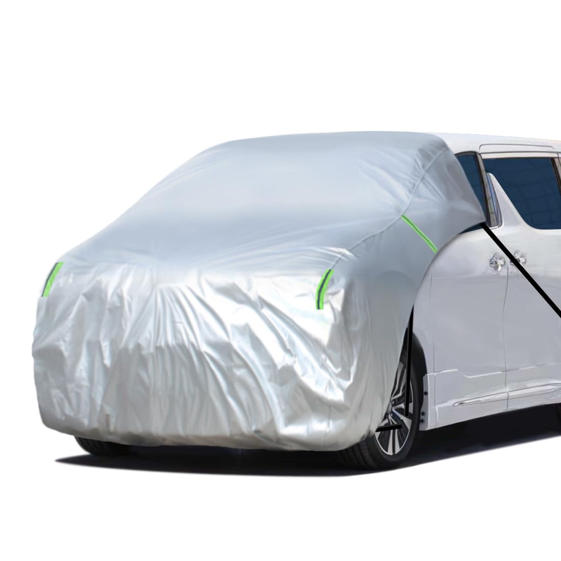 ハーフカバー 一体式 半分自動車カバー 210Dオックスフォード 裏起毛タイプ フロントガラス・ボンネット保護 防水 防雪 防塵 UVカット 日焼け防止 反射ストリップ付き ミニバン アルファード セレナ デリカ D:5用 四季対応 収納袋付き