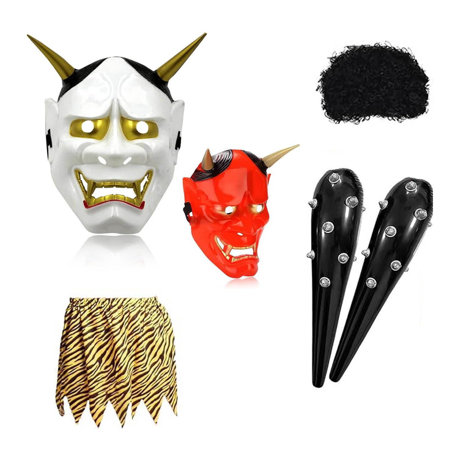 [SVNVIOZ] 節分 赤鬼 青鬼 コスプレ 6点セット お面*2個 鬼のパンツ ウィッグ こん棒*2個 なまはげ 鬼面 仮装 衣装 おに 豆まき オニ退治 節分豆 郷土 こん棒 お祭り