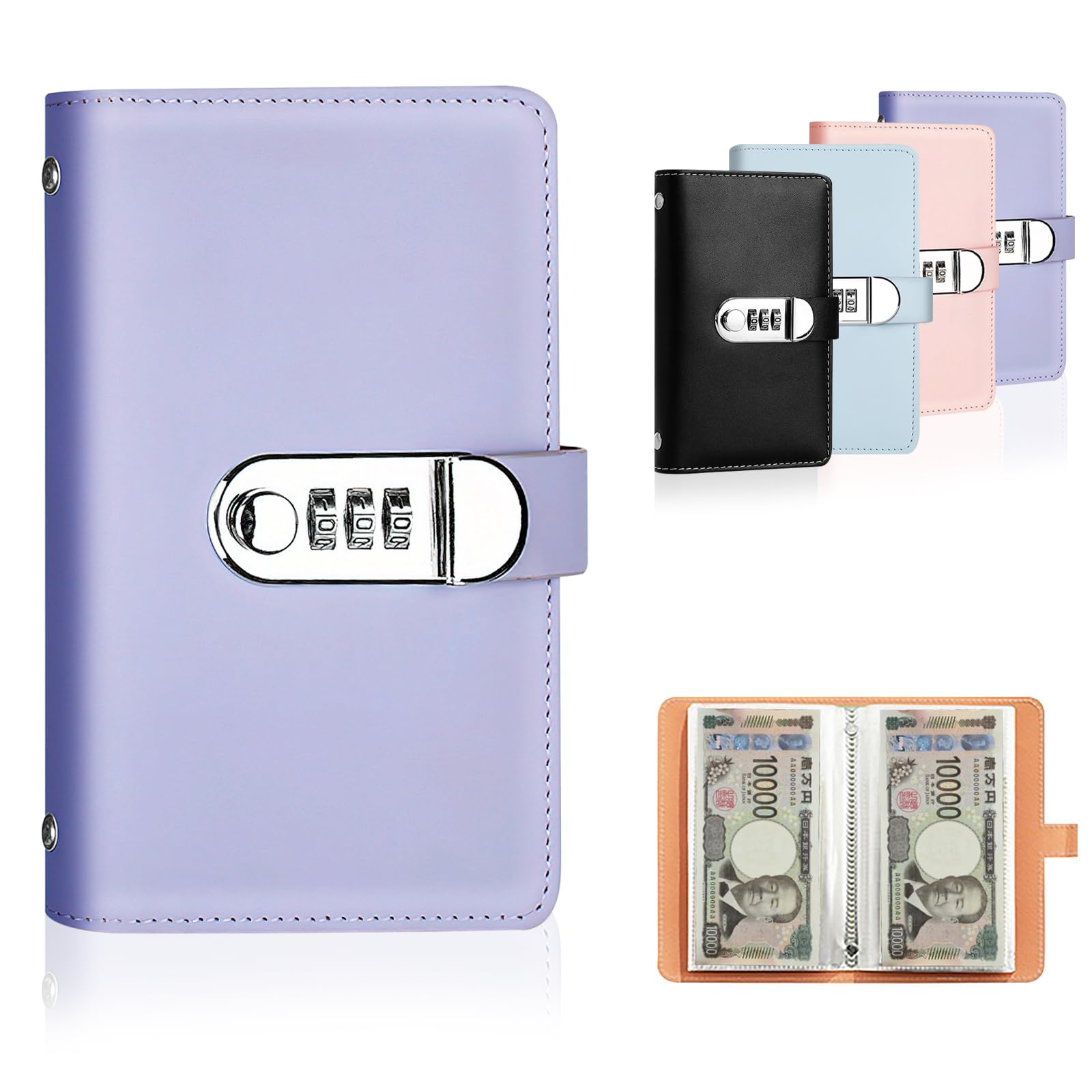 aninako お札 貯金箱 札 紙幣100枚収納 コンビネーションロッ 厚手の革 隠し金庫 お金仕分け 封筒貯金 貯金ファイル 本型 紙幣 記念紙幣 (パープル)