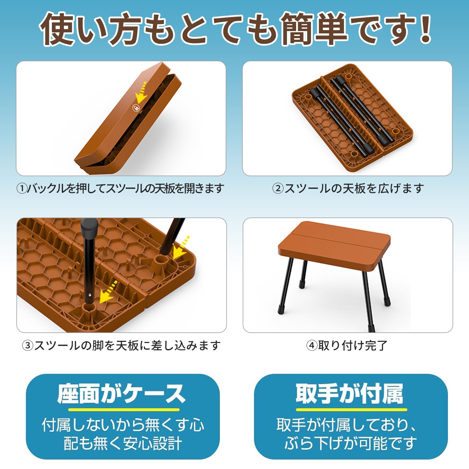 BEYOURCHOI 折りたたみ椅子 折り畳み椅子 折りたたみ椅子 折り畳み椅子 軽量 コンパクト アウトド キャンプ アチェア 5段階高さ調節 持ち運び 一秒開閉可能 伸縮式スツール 防水 (橙)