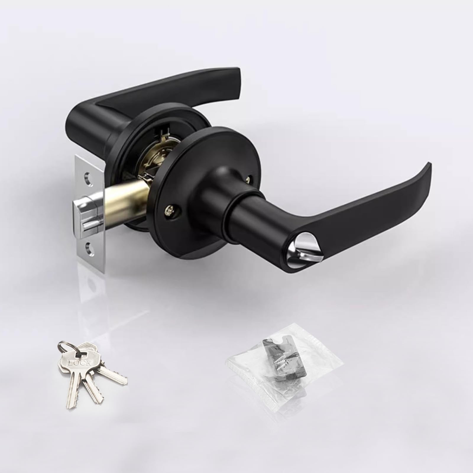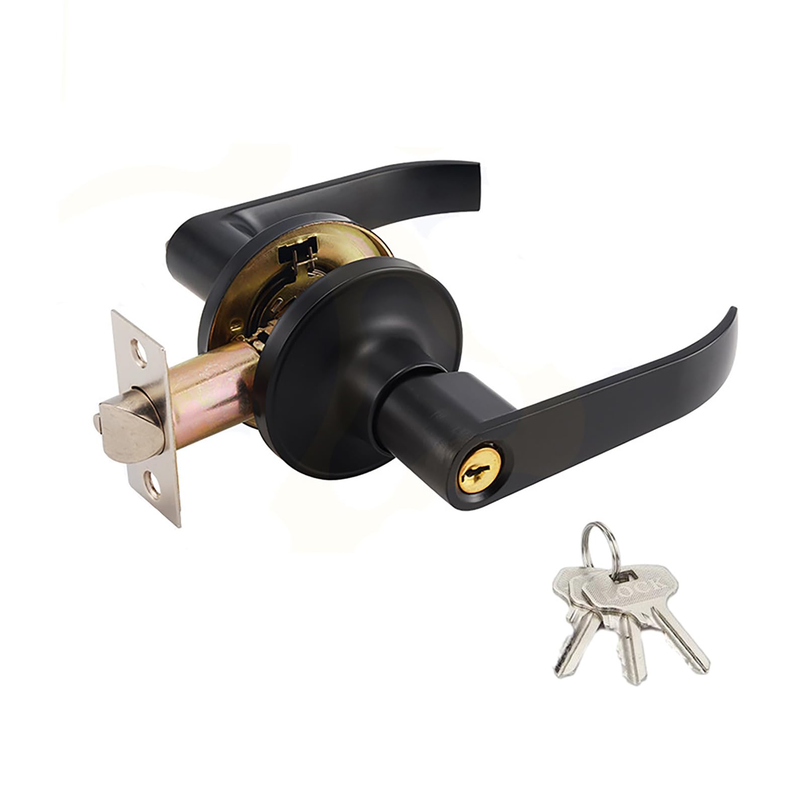 JUNXU ウェーブレバー 鍵付き玄関ドアロック/ドアノブ 金具 ノブ レバーとクローゼットレバーセット (JX805L)