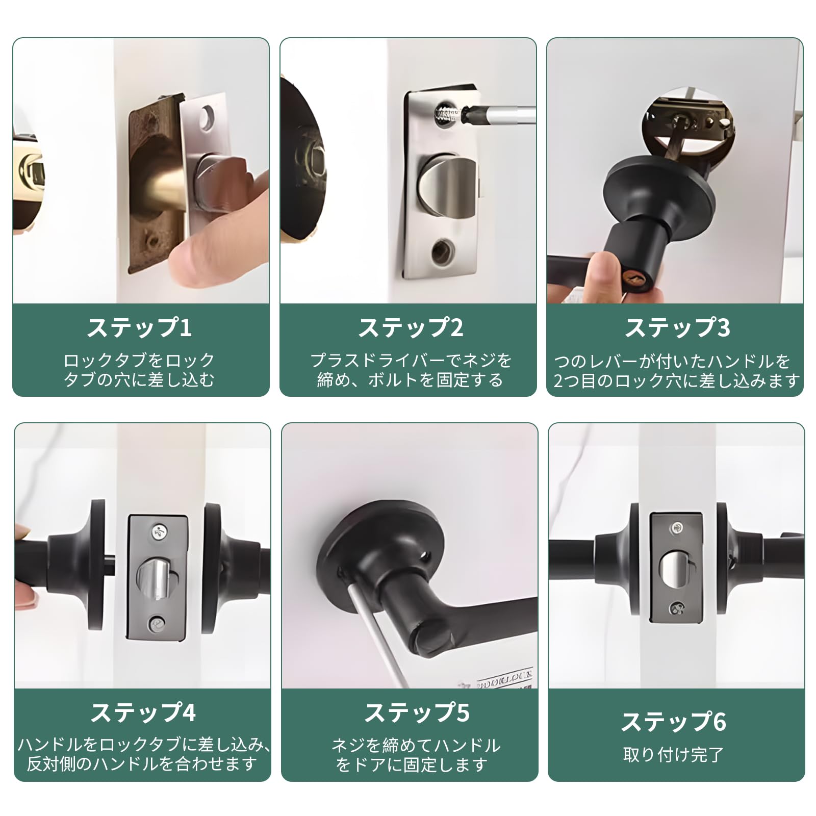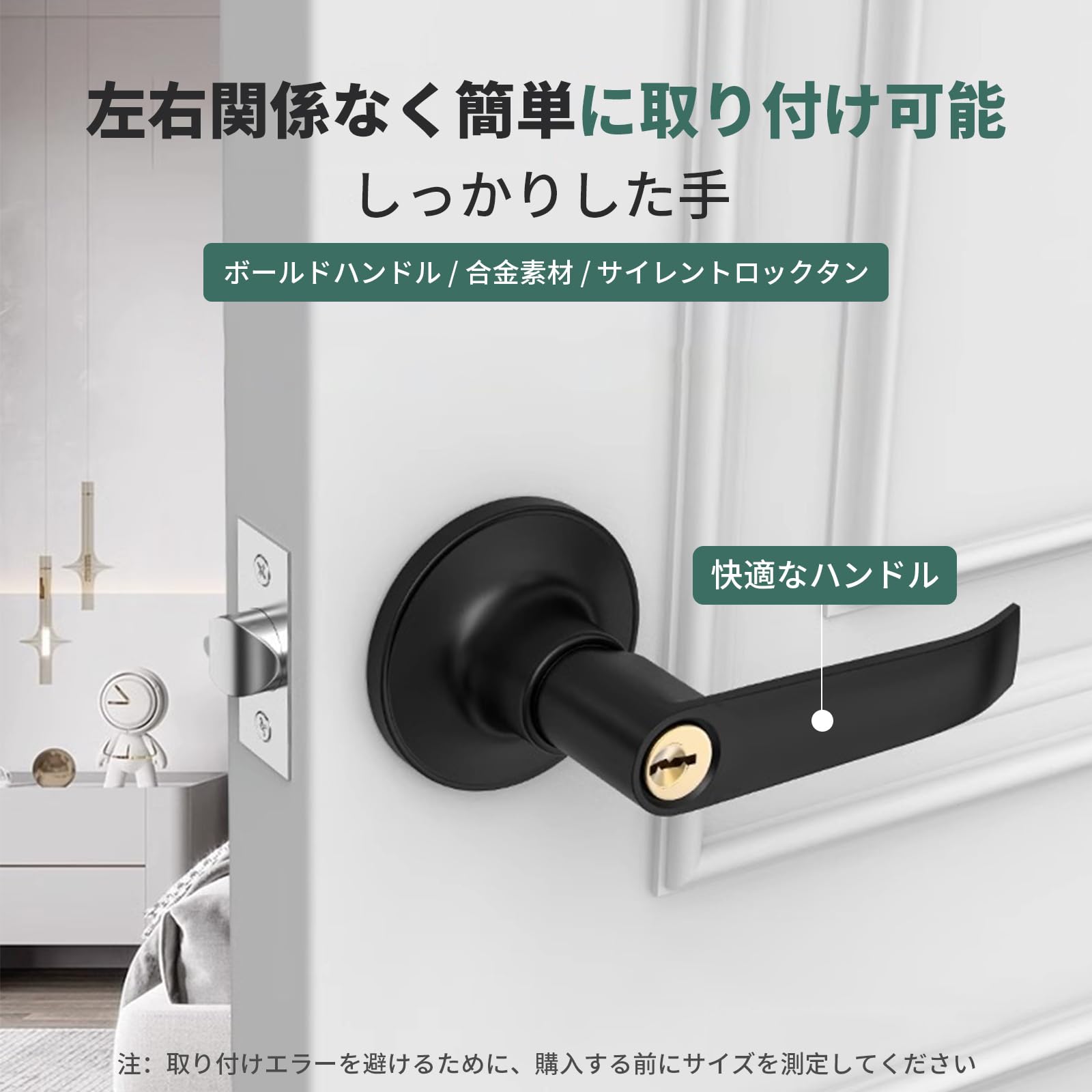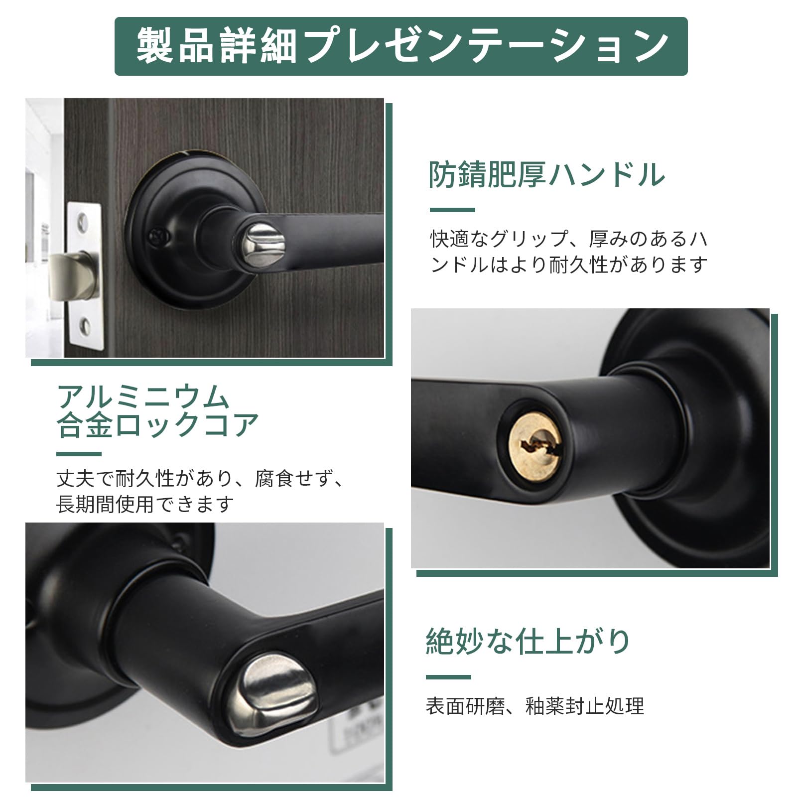 happykau ドアノブ 鍵付き レバーハンドル ドアレバー 浴室ドアノブ トイレ用 玄関ドアノブ 住宅室内用レバーハンドル 室内 ドアノブ交換 鍵付き ドアレバー (ブラック)