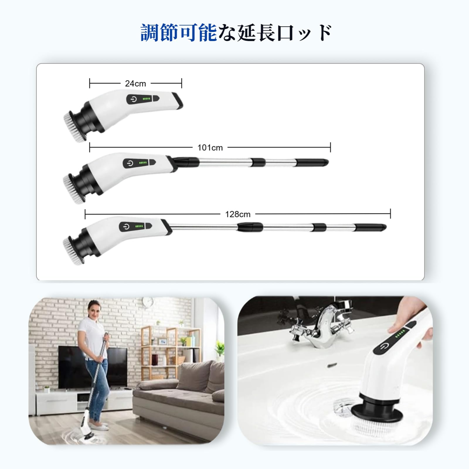 Leebein バスポリッシャー 電動お掃除ブラシ 8つ取り替えブラシ付き お風呂掃除 ターボプロ ブラシ USB C充電式 長さ伸縮可能 手持ち式 5000mAh大容量 90分間連続使用 風呂 浴室 浴槽磨き トイレ掃除 床 窓 壁 玄関 年末掃除 PSE認証済み 日本語説明書付属
