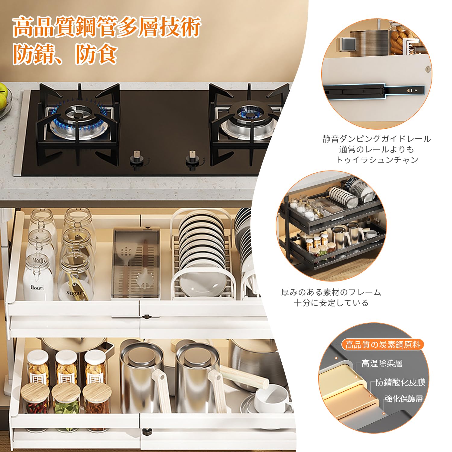 ESJNNK シンク下 収納 L字型 スライド式 2段 金属製 防錆 高さ調節可能 洗面台下 引き出し 収納ラック キッチン収納 シンク下収納ラック 調味料 組立簡単 大容量 省スペース (2)