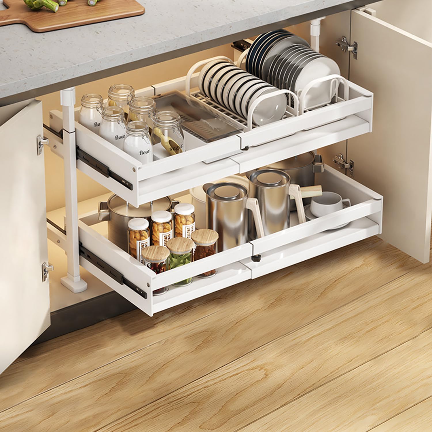 TATIU シンク下 収納 スライド式 シンク下収納ラック 2段 キッチン収納 引き出し 洗面台下 洗面所 調味料 収納 L字型 金属製 大容量 組立簡単 省スペース キッチン/バスルーム/ランドリールーム (ホワイト)