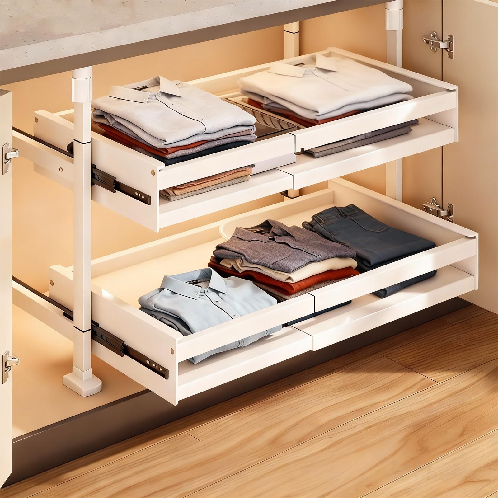 Targinler 押入れ ラック 押し入れ 棚 伸縮 クローゼット 収納 簡単組立 押し入れ 収納 キッチン 収納 棚 シンク下 収納(奥行24cm 幅47~68cm)