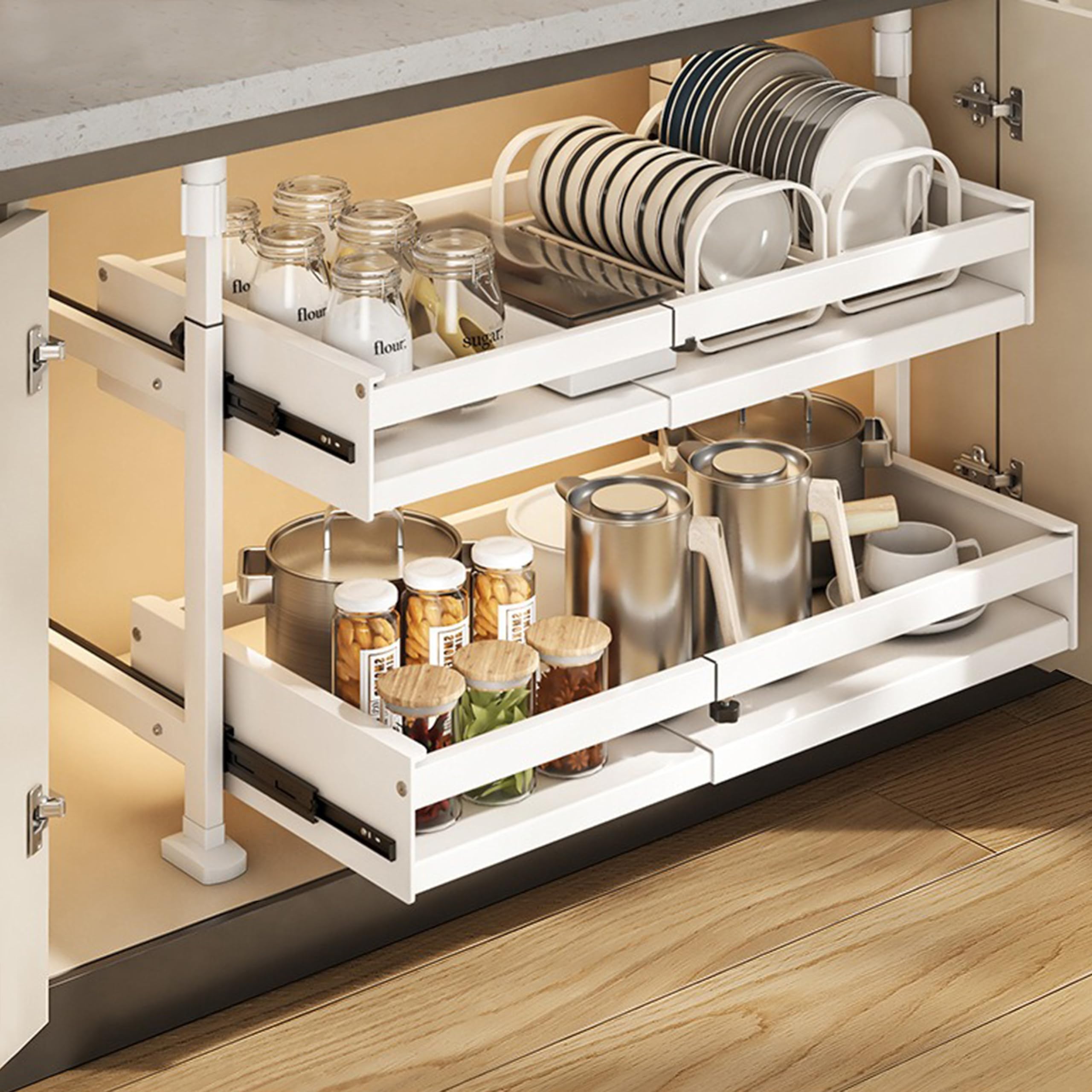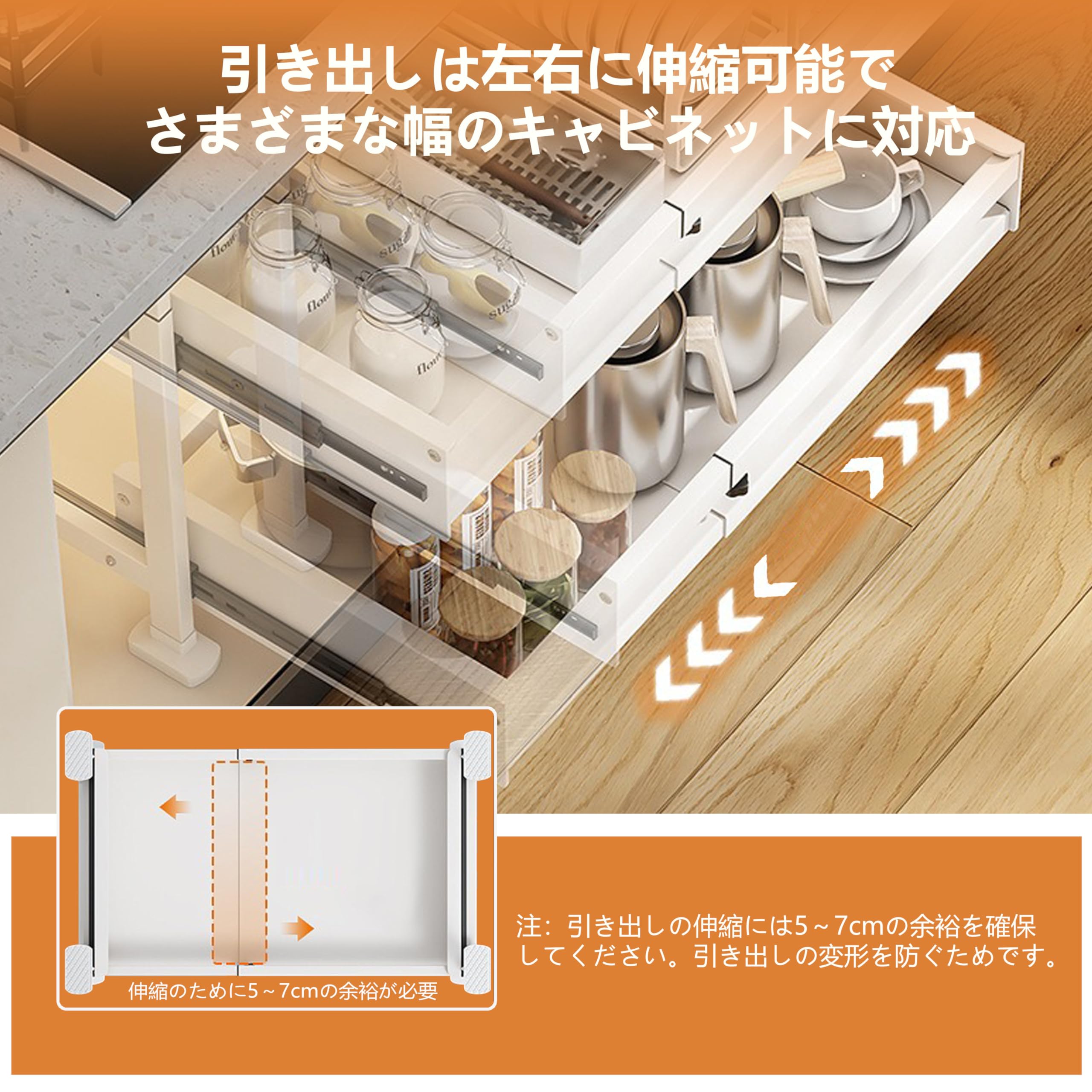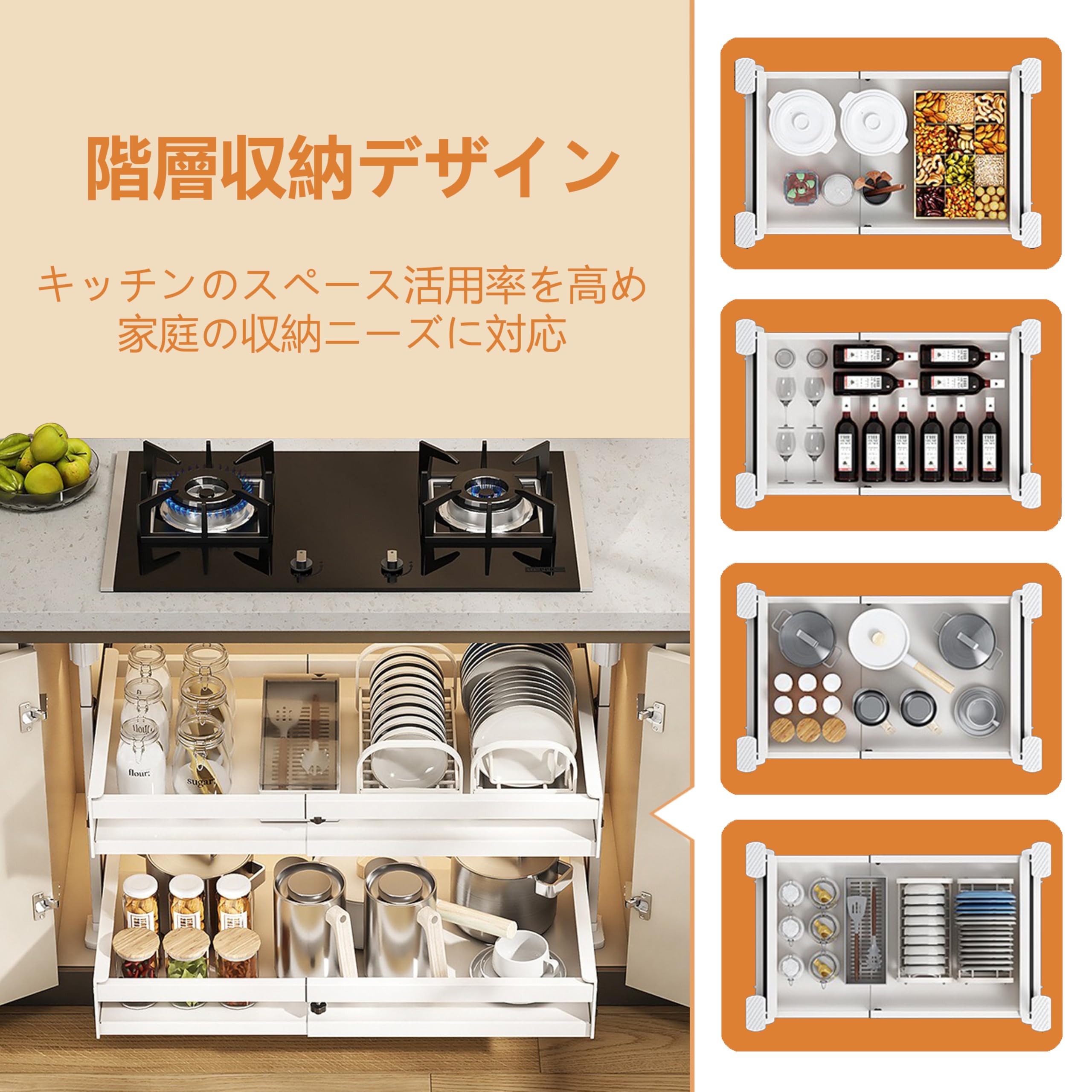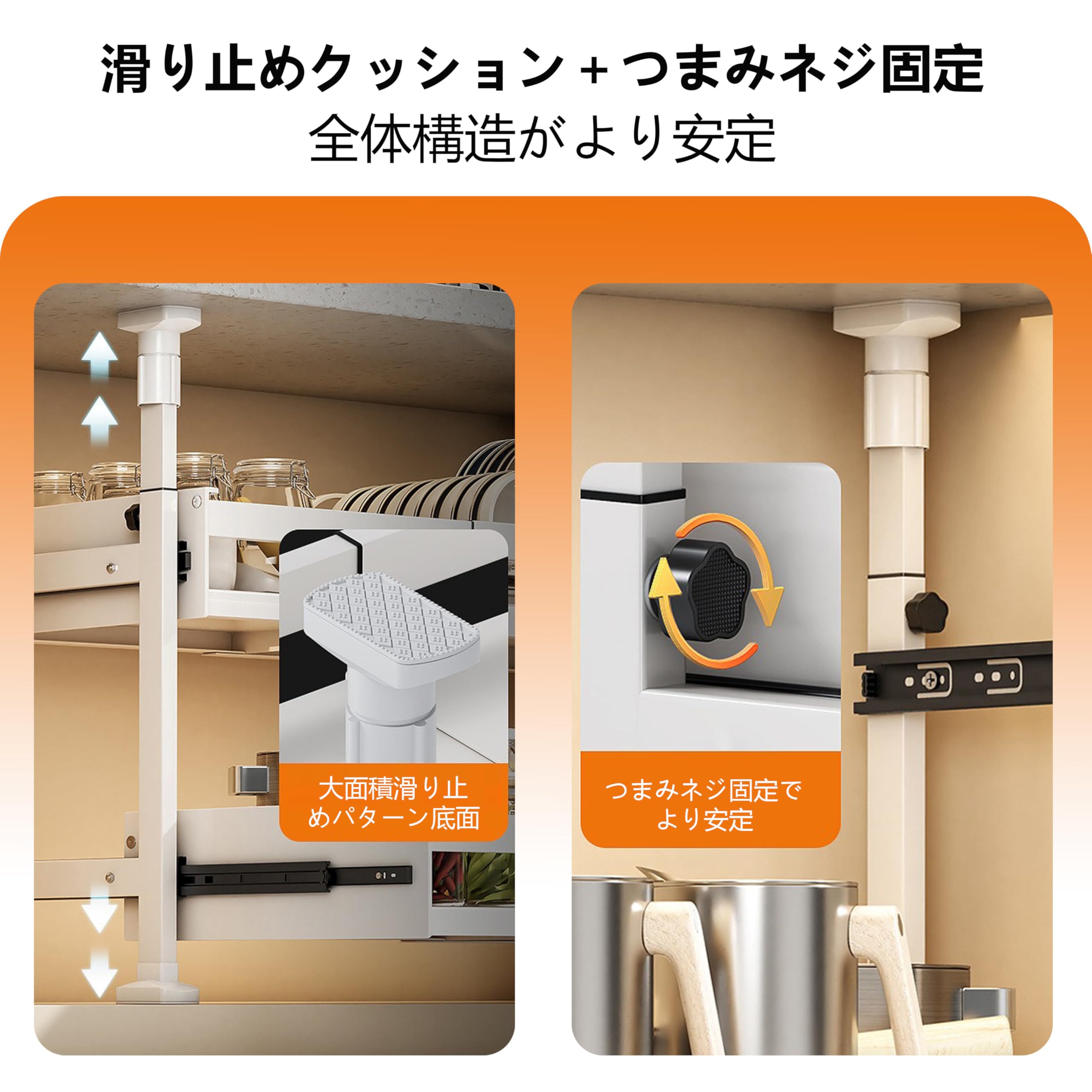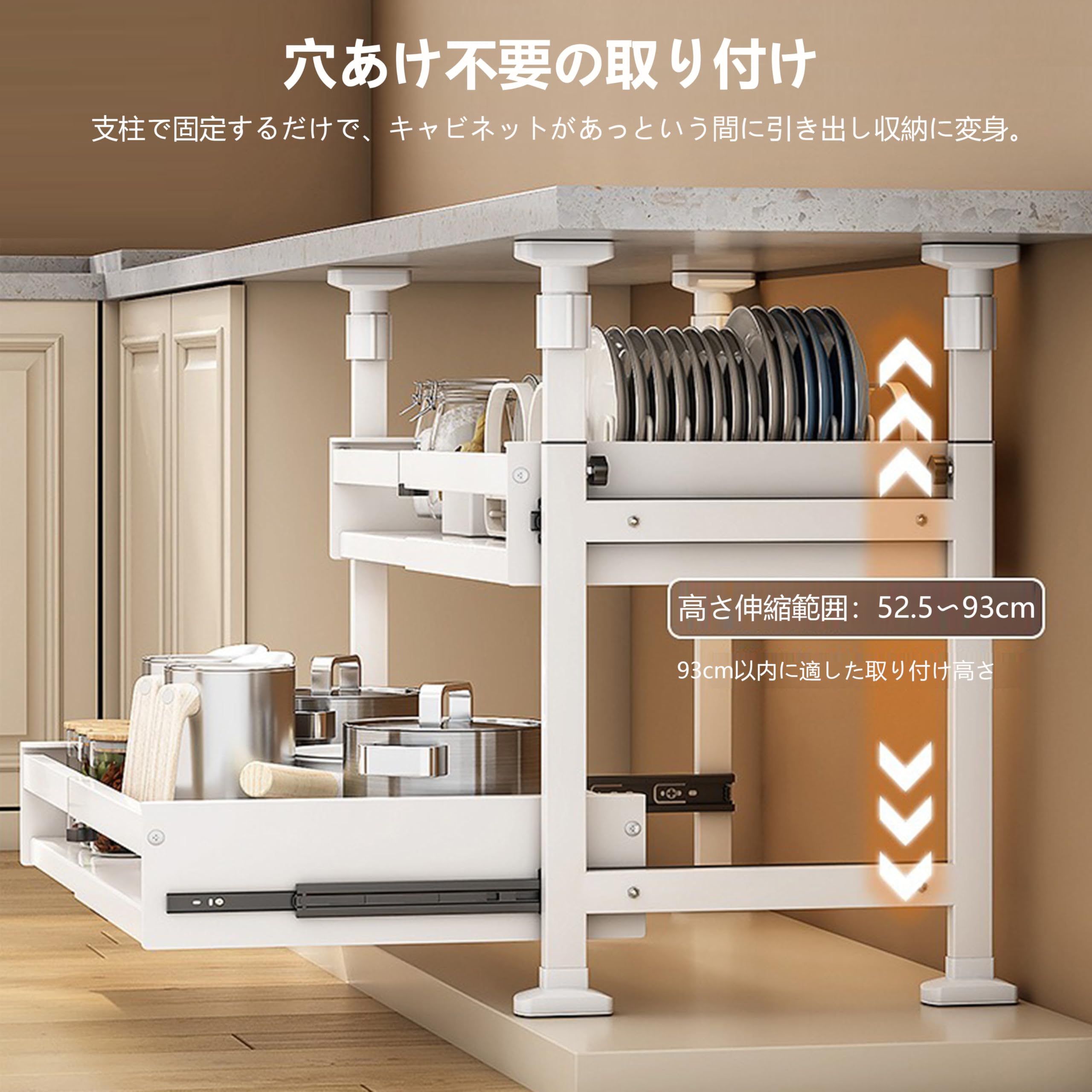 シンク下収納 スライドラック 2段式伸縮可能 キッチン収納引き出し スライドレール付き 収納バスケット 穴開け不要 高さ3段階調整可能 シンクした収納 キッチンラック 台所・洗面台下 キッチン下収納棚 (XL)