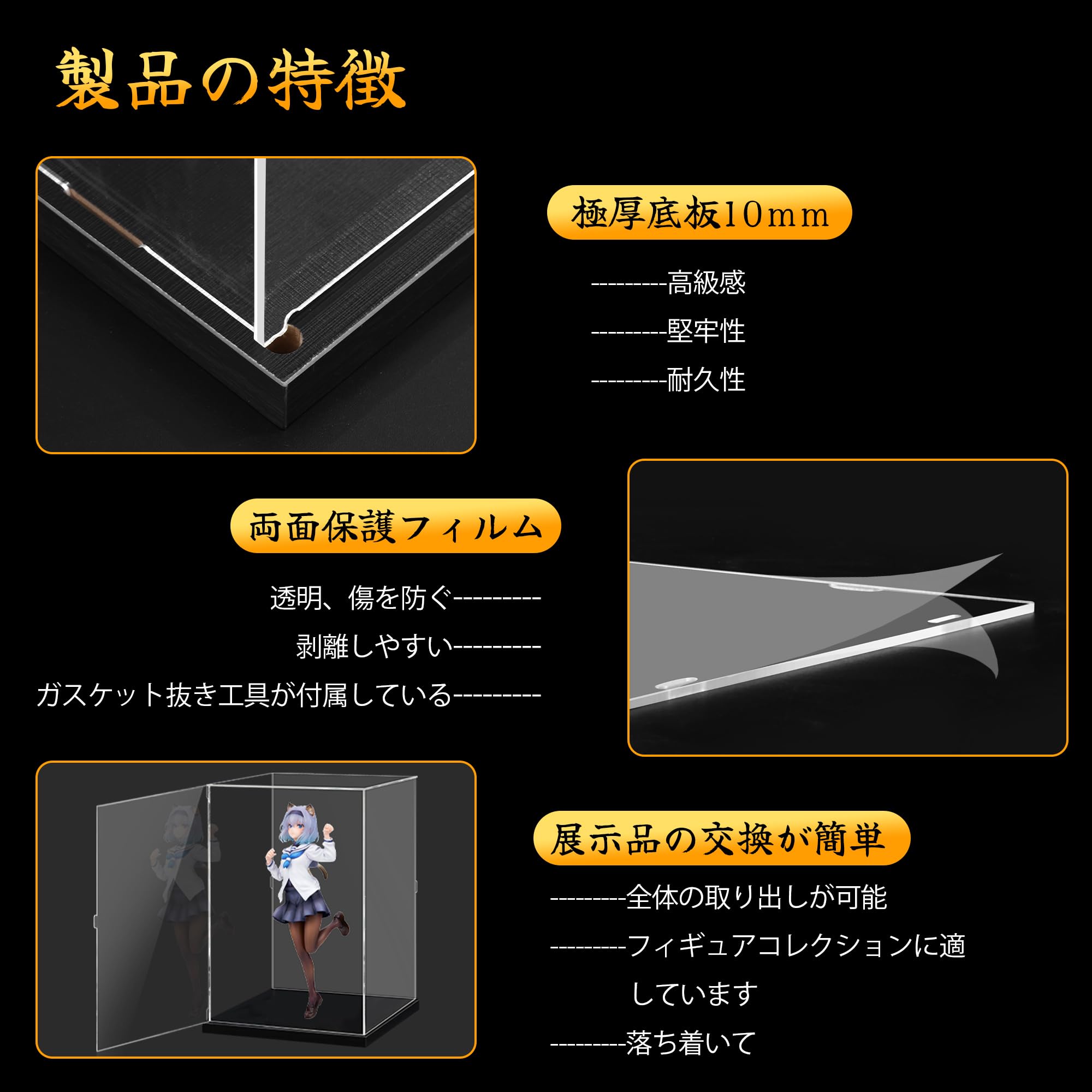JINGBAN フィギュアケース コレクションケース ディスプレイケース アクリル製 3mm 透明 (台座ミラー+背面ミラー, W35*D35*H35cm)