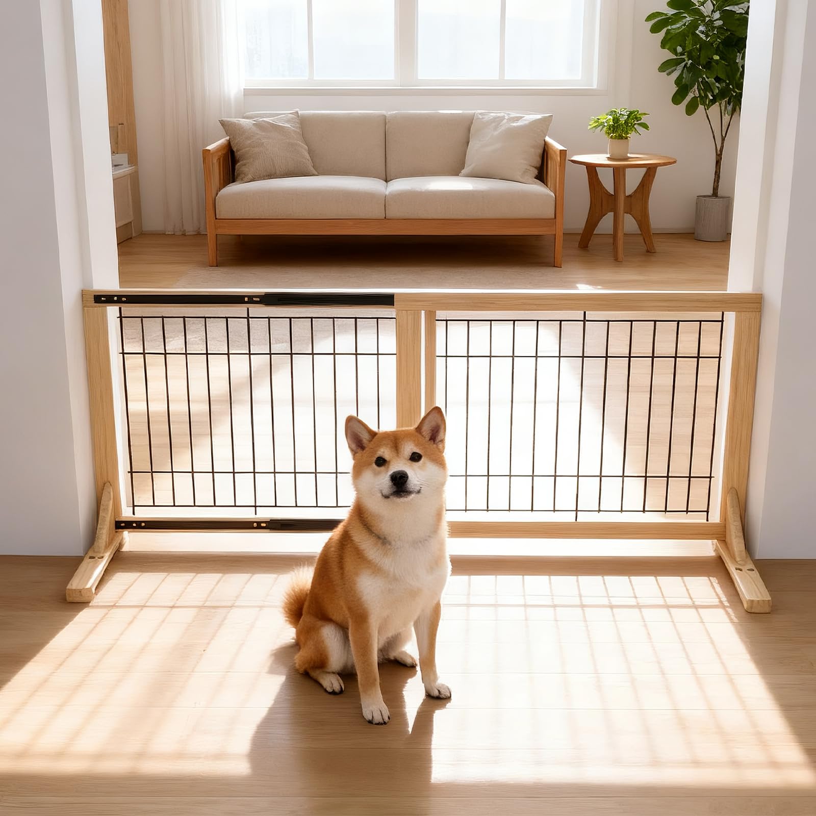 Oapety ペットゲート ペットフェンス 室内犬用 折りたたみ式 木製 犬 柵 脱走防止 飛び出し防止 高さ43cm 幅234cm 倒れない設計 簡単設置 中小型犬用