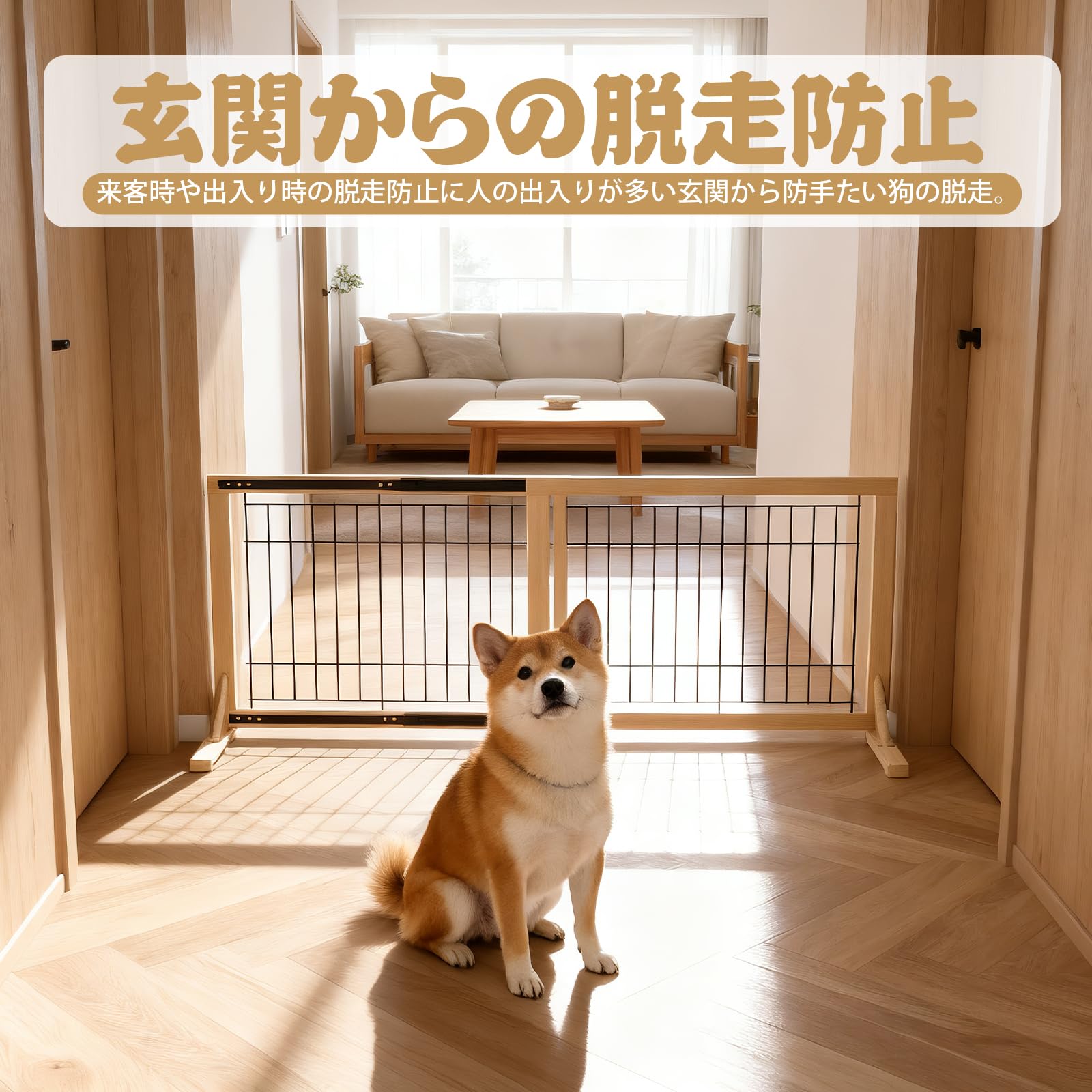 ペットゲート 木製犬ゲート YOCAN ペットフェンス 高さ58cm 長さ243cm 置くだけゲート折りたたみ 倒れない いぬ 柵 室内 犬脱走防止 飛び出し防止 小型犬 中型犬用 天然木 4枚パネル