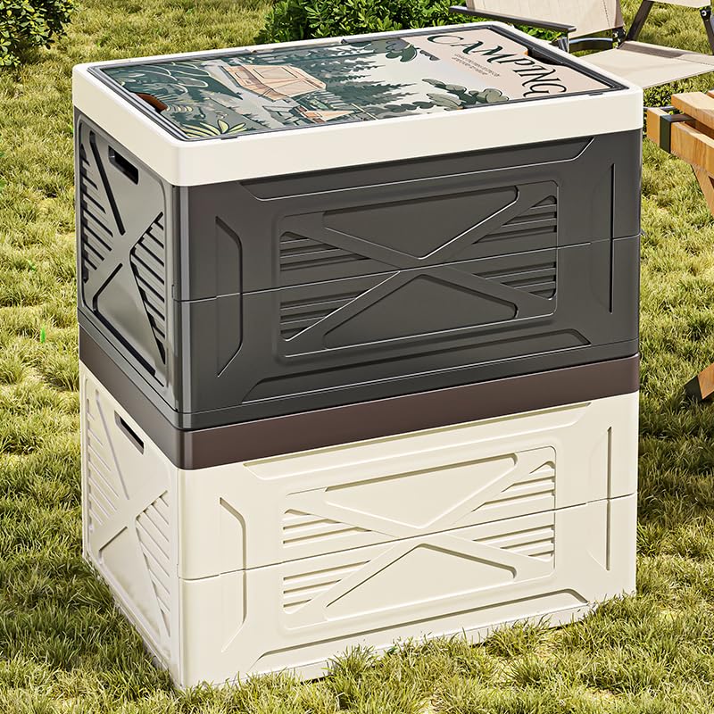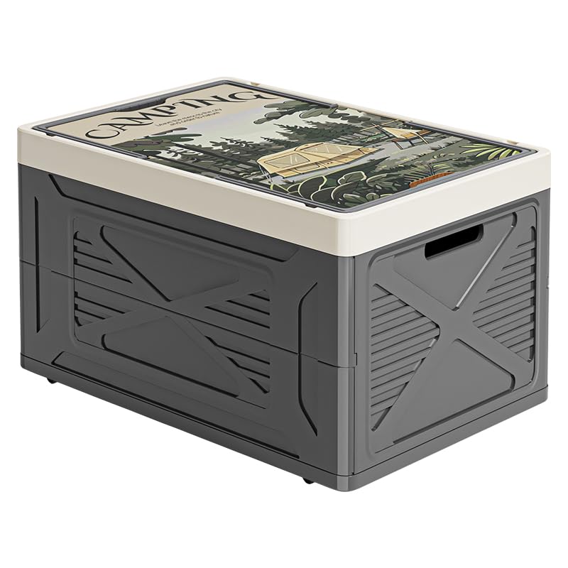 Zilnox コンテナ ボックス 取っ手付き 折り畳み キャンプ 折りたたみコンテナ 木製の蓋付き 収納ボックス 大容量 強い耐荷重 収納 組み立て簡単 グレー 1個 L 幅53.3×奥行35.8×高さ28.5cm