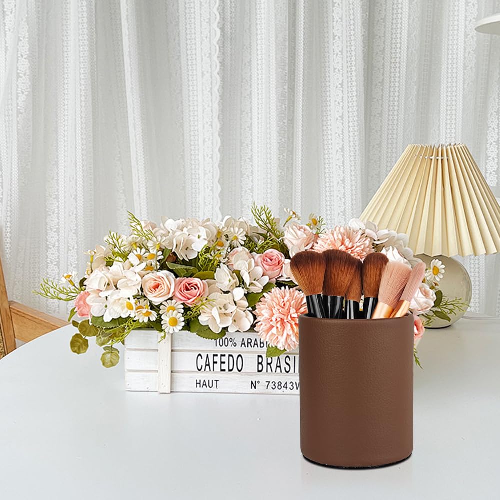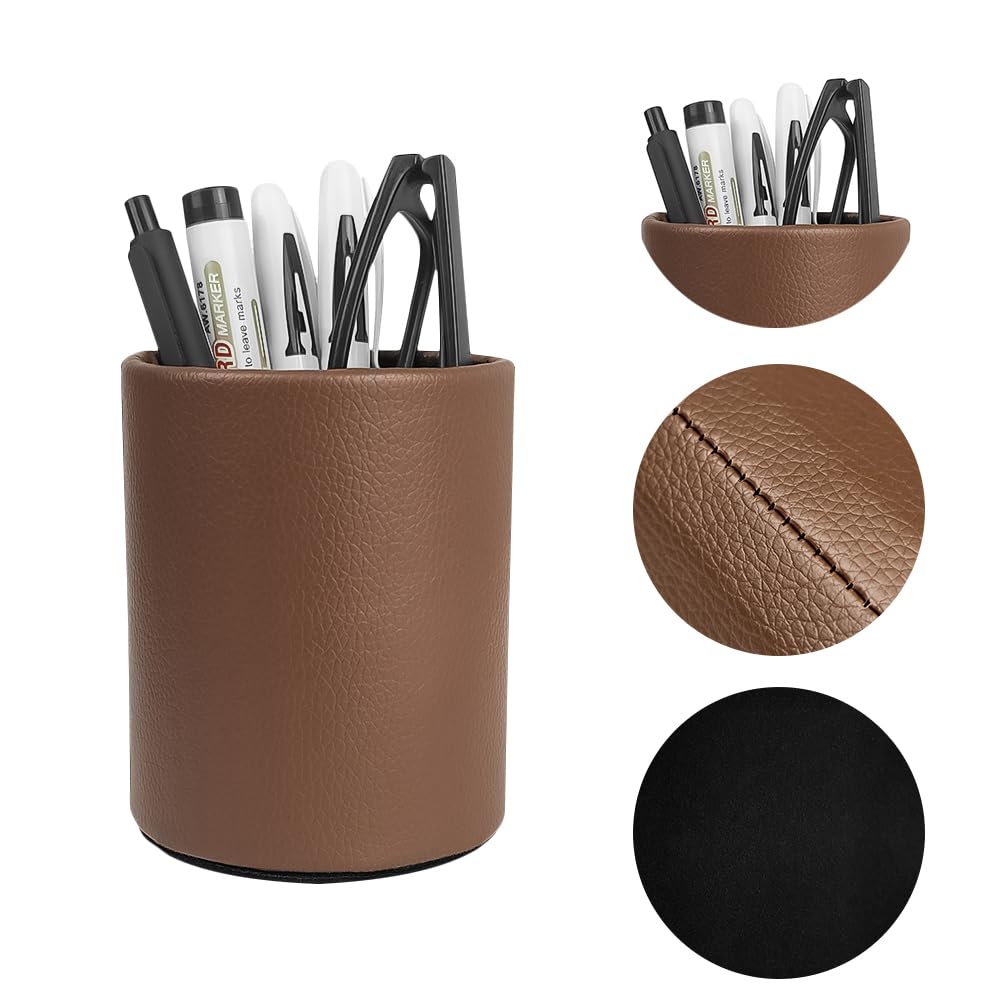 Fosinz ペンスタンド ペン立て れざー おしゃれ シンプル デザイン 車 鉛筆立て オフィス 収納 スタンド デスク上収納 卓上 整理ボックス 文房具 デスク周り 子供部屋 書斎 スタッキング (ブラウン)