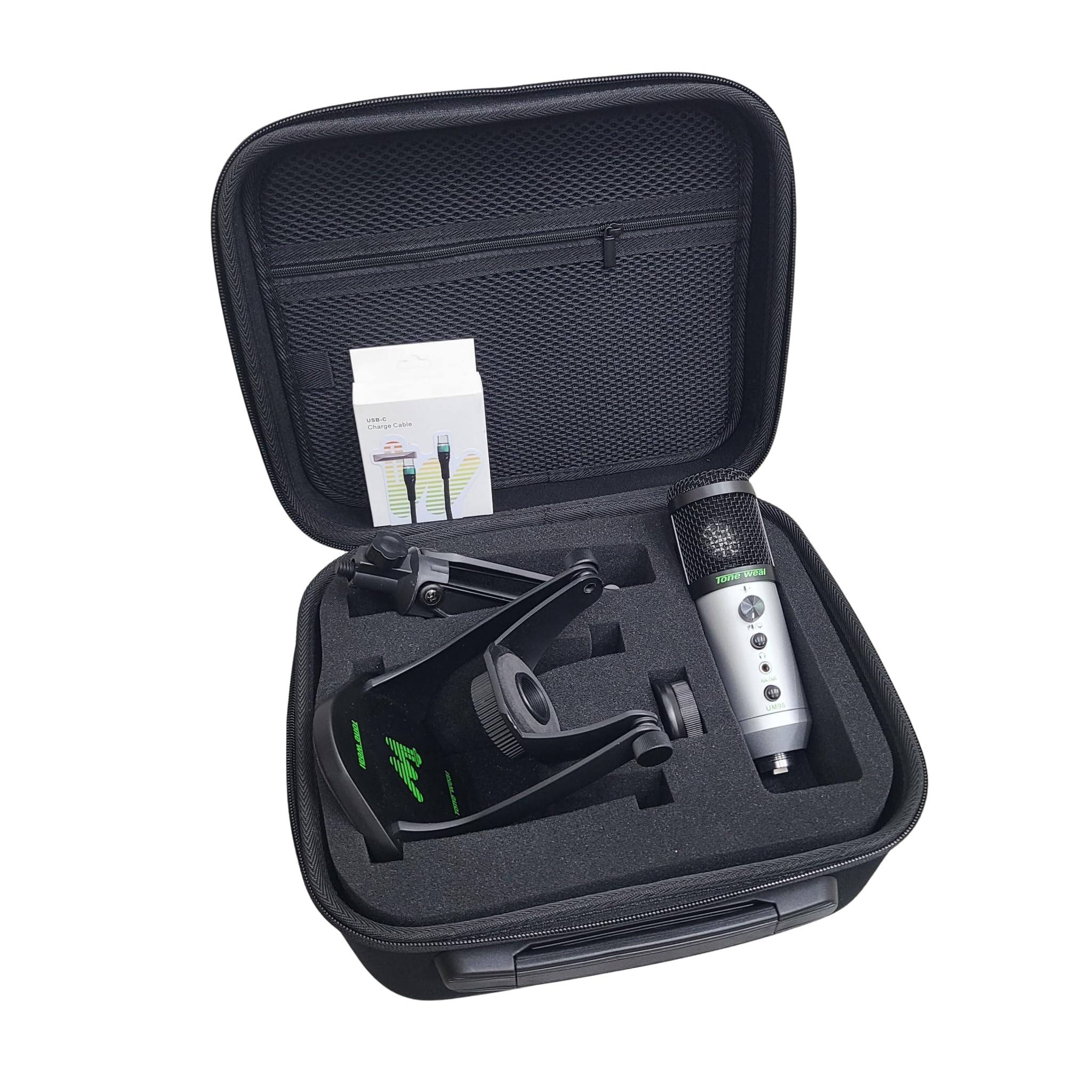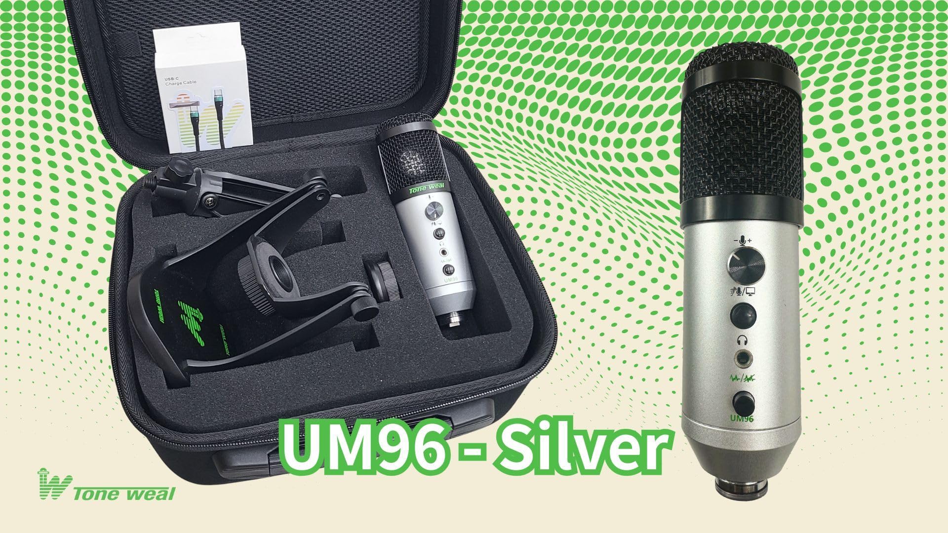 Tone Weal UM96 USBコンデンサーマイクキット – 96kHz/24ビット、カーディオイド、プラグアンドプレイ、デスクスタンド、ショックマウント、ハードケース付き – ストリーミング、ゲーム、レコーディング、iOS/Android対応 (グレー) (グレー)