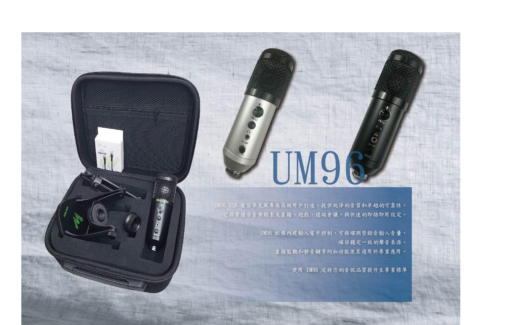 Tone Weal UM96 USBコンデンサーマイクキットは、高音質と信頼性の高いパフォーマンスを求めるクリエイター、ゲーマー、そしてプロフェッショナルのために開発されました。96kHz/24ビットの高解像度オーディオとカーディオイド収音パターンを備え、ボーカルや楽器の音を卓越した明瞭度と温かみのある音で捉えます。 利便性を追求したUM96は、PC、Mac、iOS、Androidデバイスとシームレスにプラグアンドプレイで接続でき、ストリーミング、リモート会議、ゲーム、スマートフォンやタブレットでのモバイルビデオ録画に最適です。 入力レベルコントロールを内蔵し、録音レベルを正確に調整することで、安定した均一な音源を確保します。ミュートキーやヘッドホンダイレクトモニタリングなどの追加機能により、プロのスタジオワークとライブコンテンツ制作の両方で汎用性を高めます。