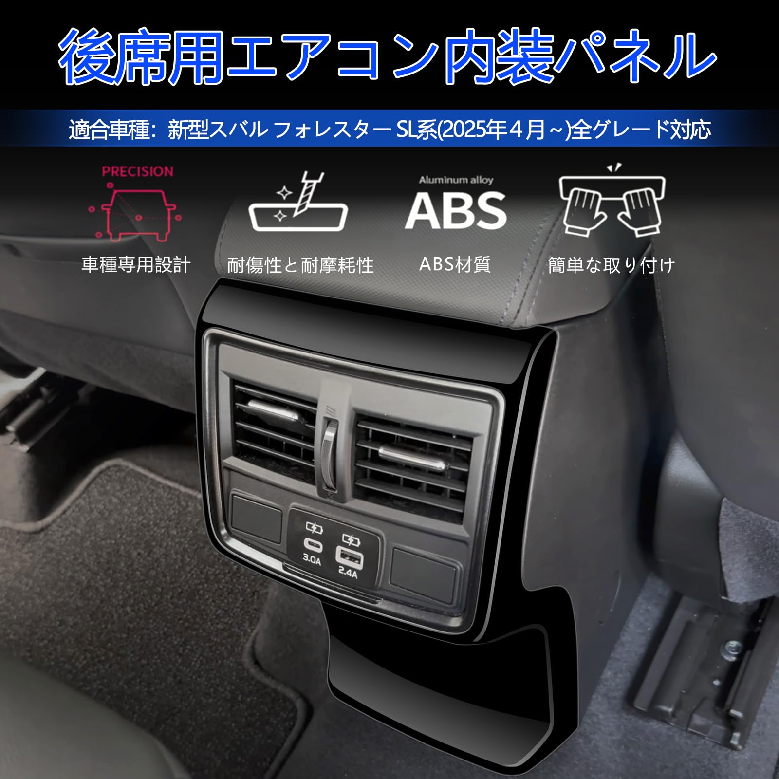 【GIKAKU】新型 フォレスター SL系(2025年4月~) アクセサリー リアエアコンパネル カバー インテリアパネル 後席用エアコン内装パネル 後席吹き出し口キック防止保護パーツ 内装パーツ アクセサリー 取付け簡単 1PC