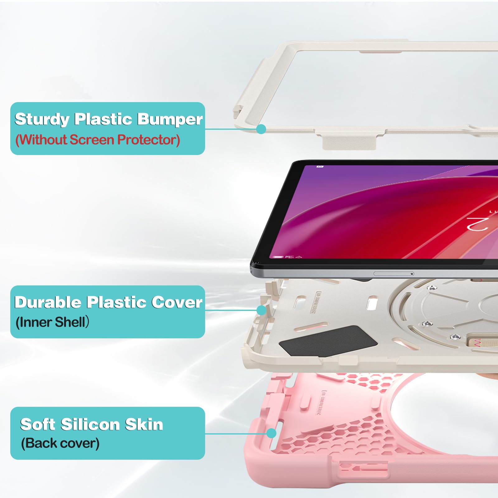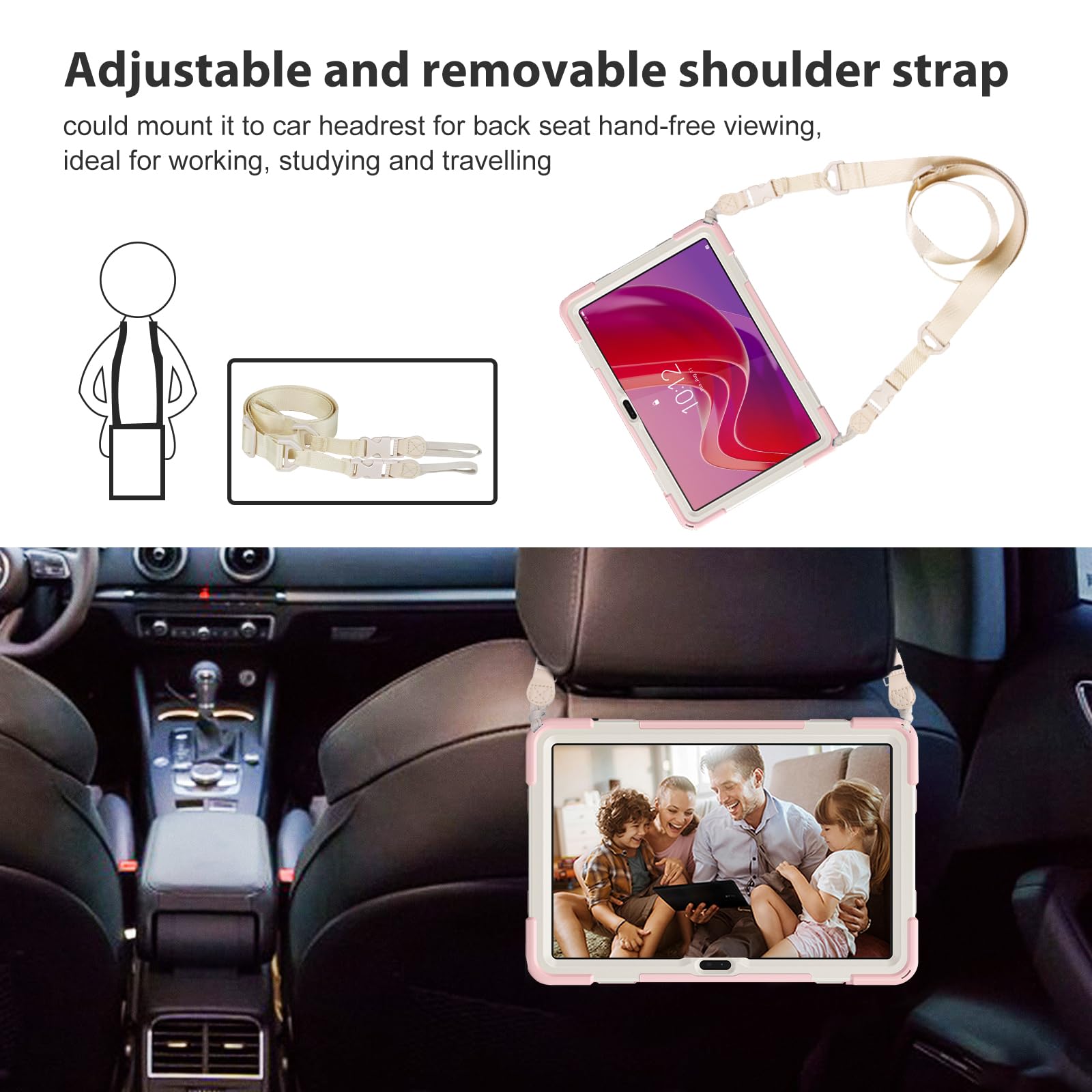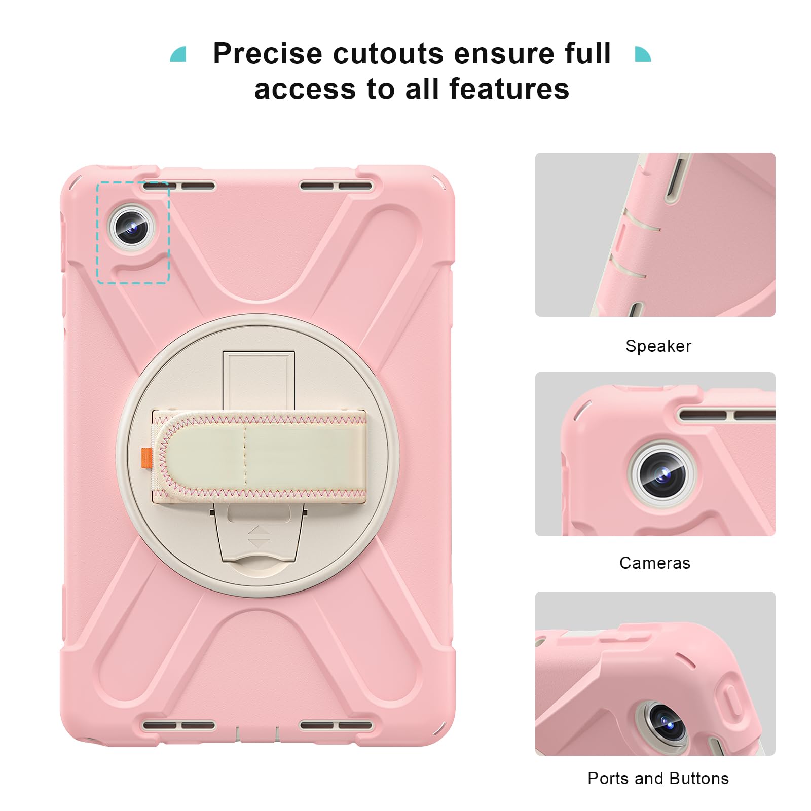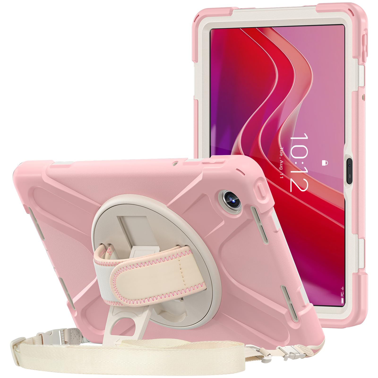 ProCase レノボ Idea Tab 11インチ 2025発売 Tab M11/B11/K11 10.95インチ 2024発売 タブレット保護ケース 360°回転可能 ショルダーストラップ付き スタンド機能 保護カバー -ピンク