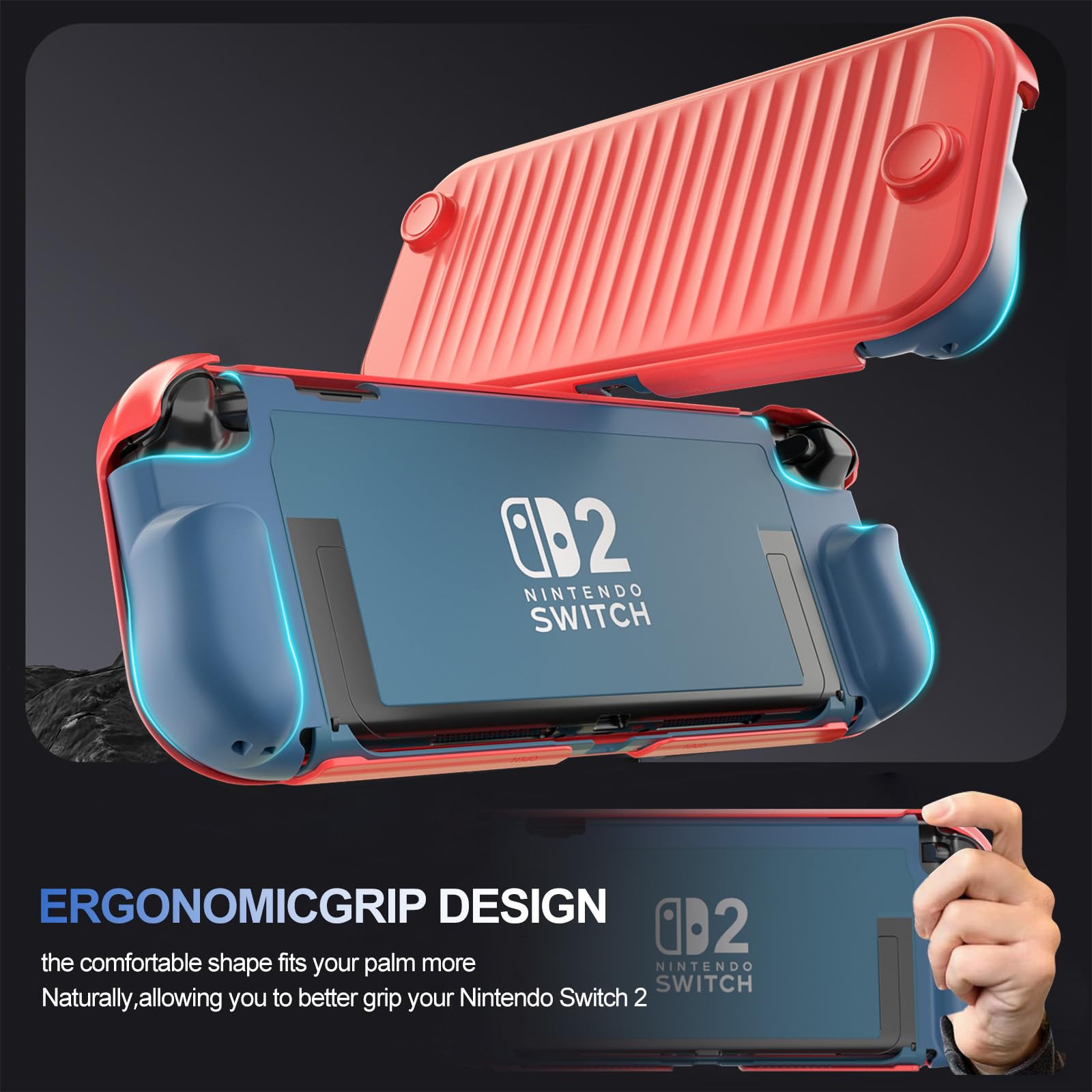 ProCase Switch 2 ケース スイッチ2 2025年モデル専用 薄型 スリム ハード 持ち運び便利 キャリングケース 耐衝撃 ポーチ 周辺機器(レッド·ブルー) [nintendo_switch2]