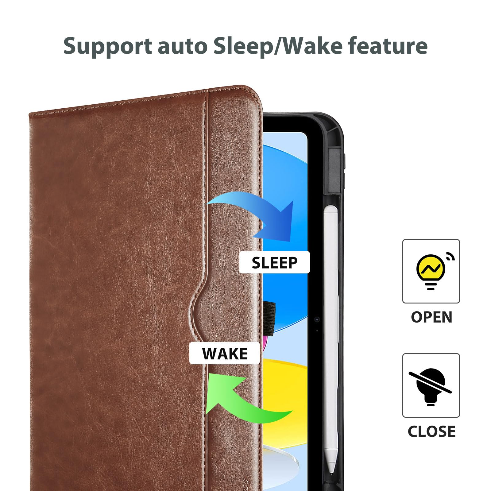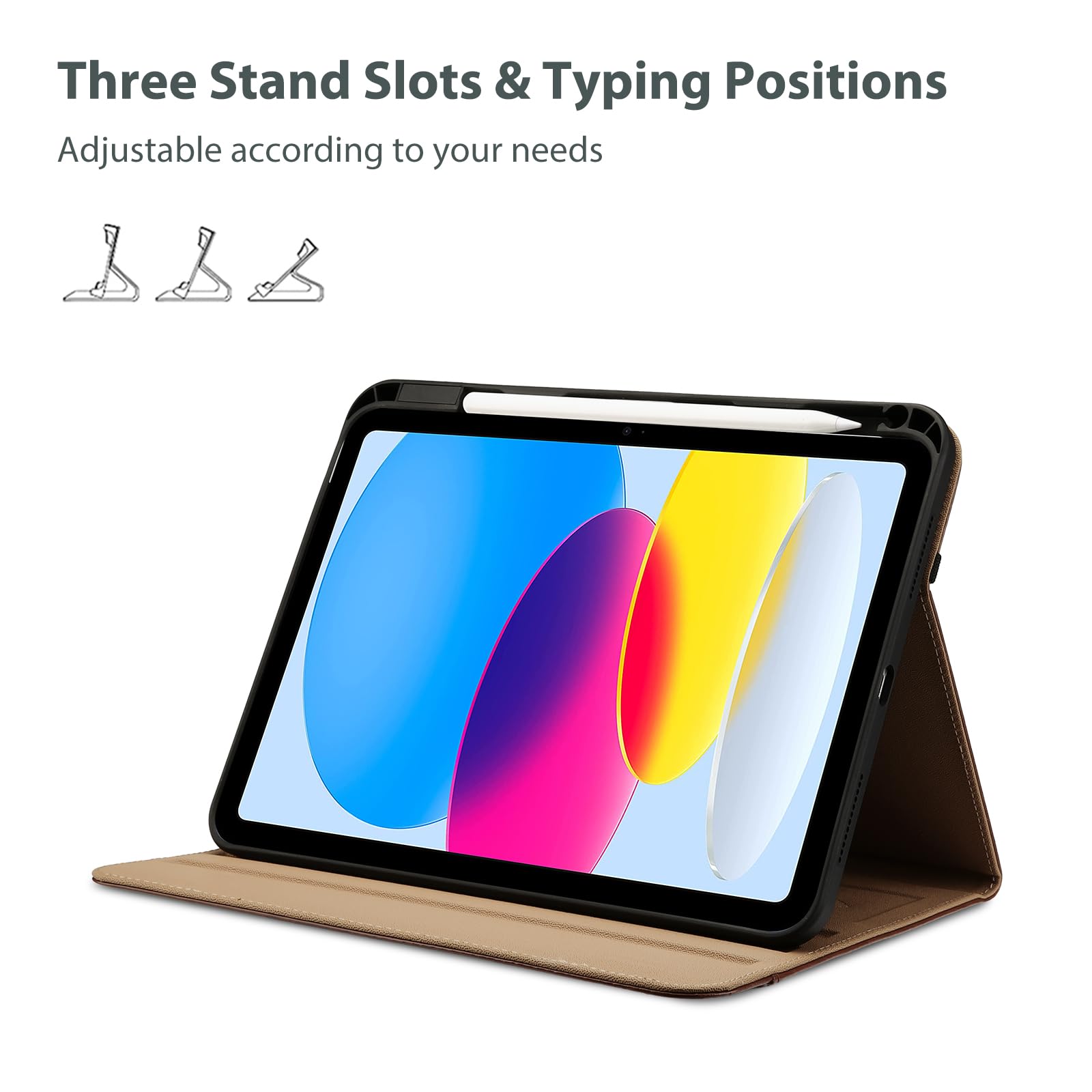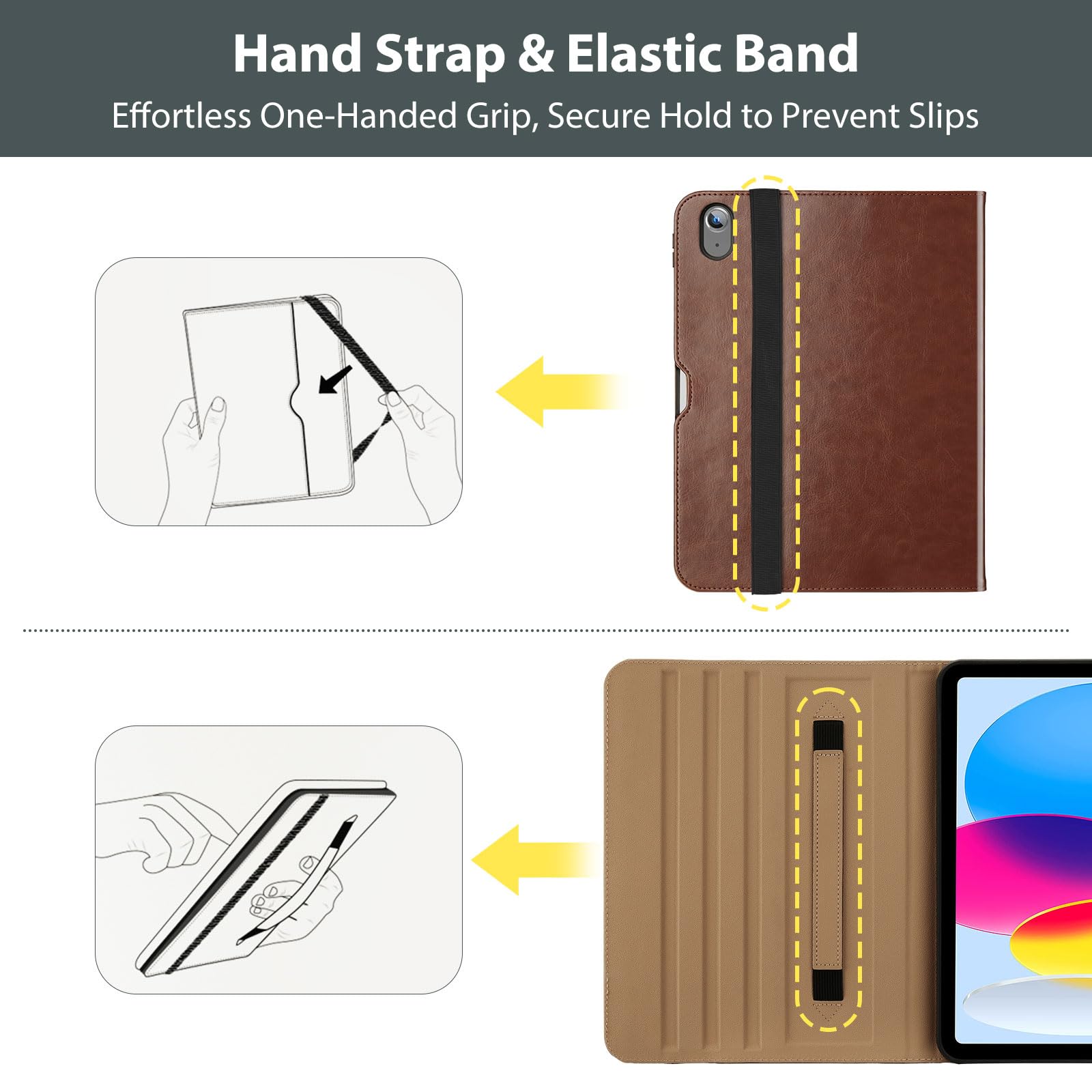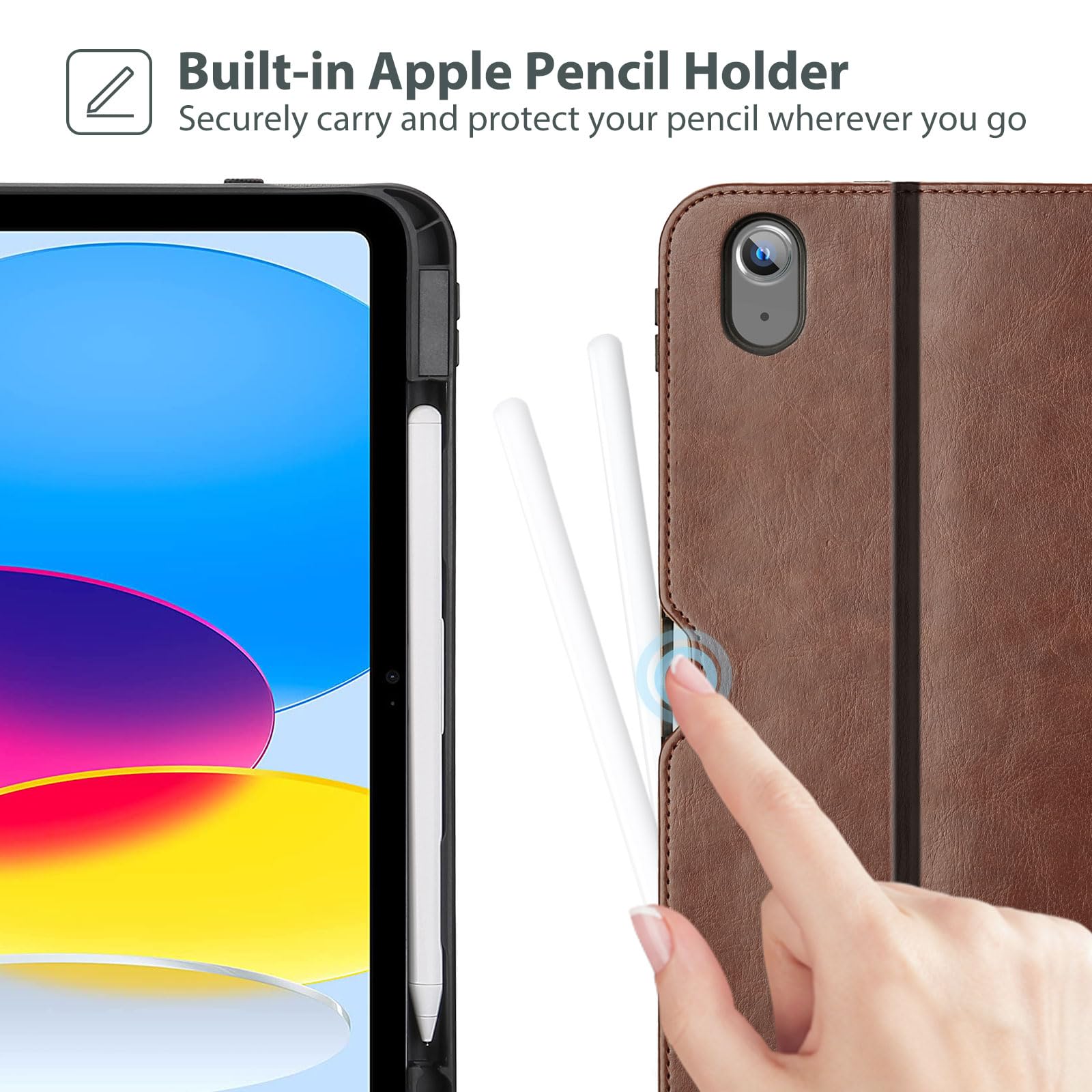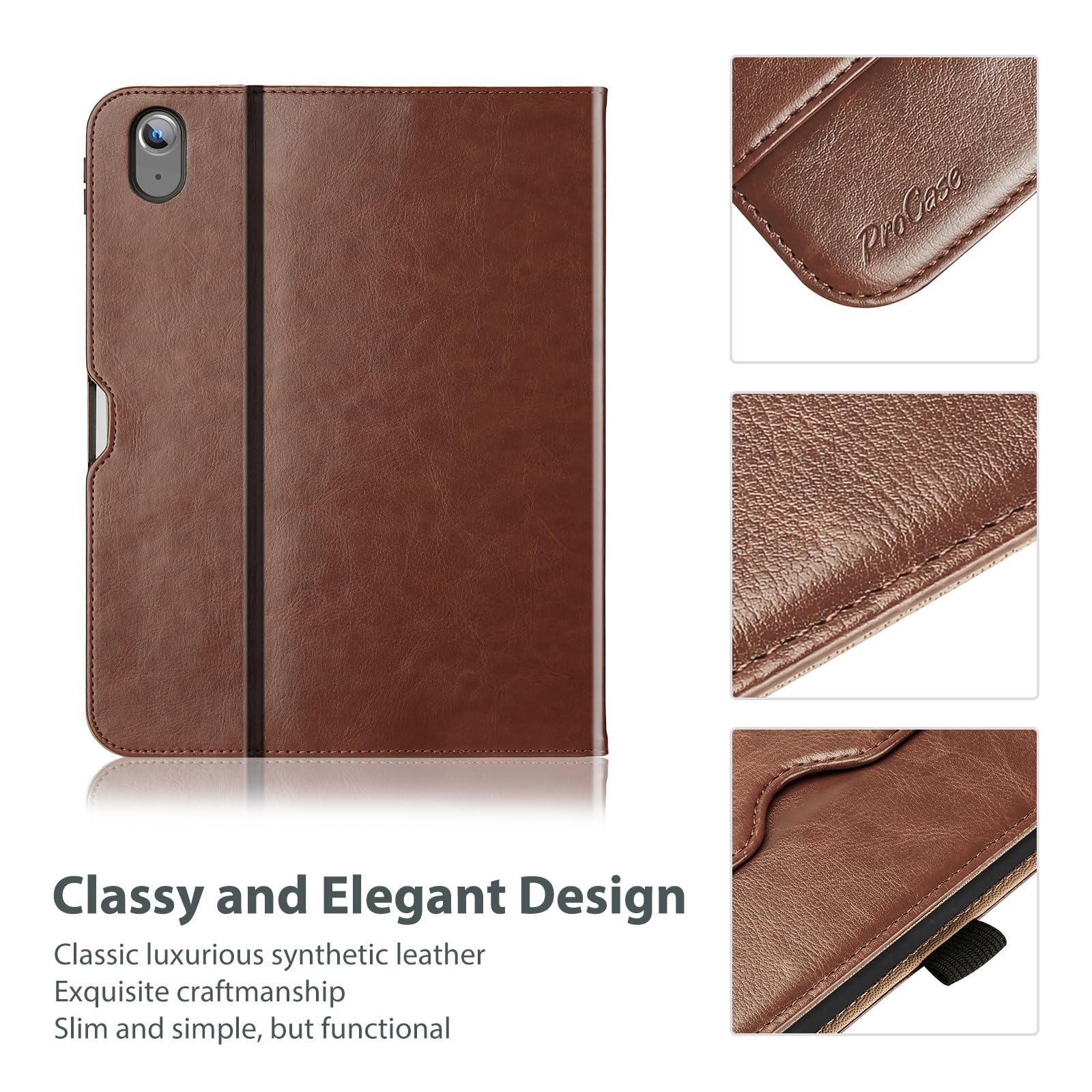ProCase iPad 11世代/10世代 ケース iPad(A16)11インチ 2025/10.9インチ 2022通用 PUレザーカバー A2696 A2757 A2777 ペン収納 耐衝撃 手帳型 スタンド フォリオカバー -ブラウン