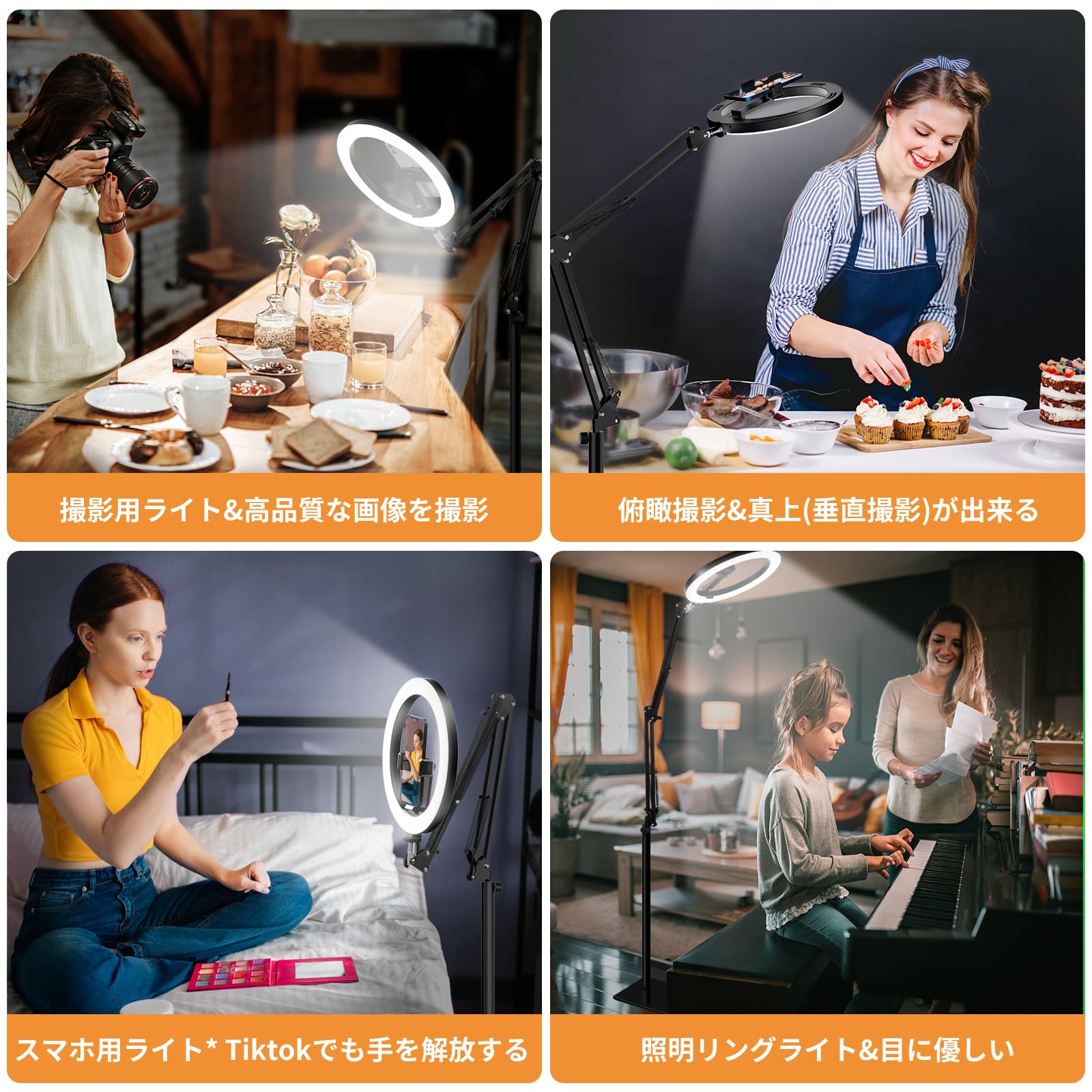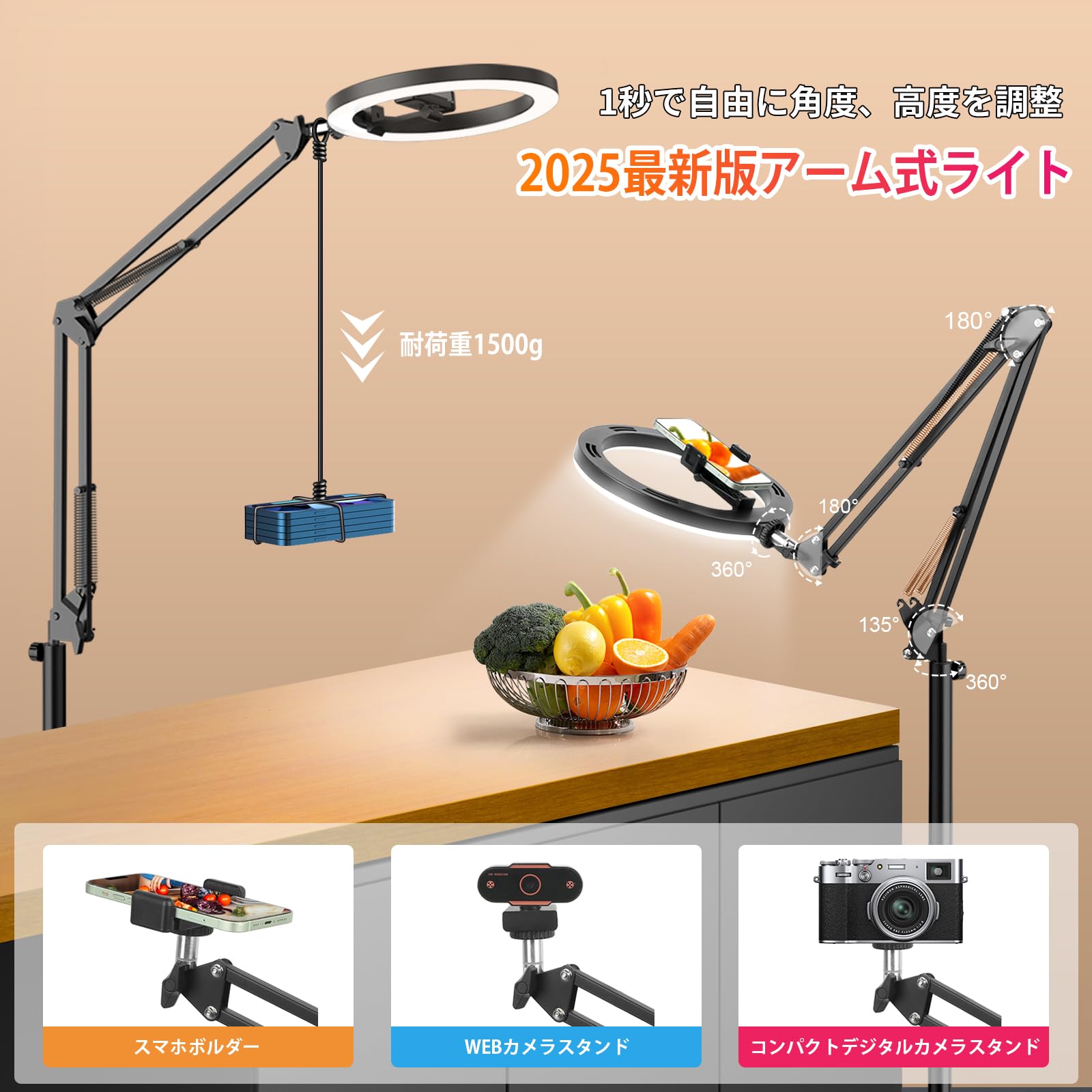 SupeDesk リングライト付きスマホスタンド ledリングライト 光度調整 ライブ配信 動画撮影 スマホ タブレットスタンド 卓上 高さ角度調整 360度回転 iPhone/iPad画面共有 4.5~13インチ携帯&タブレット多機種対応 アルミ Youtube Tiktok動画撮影