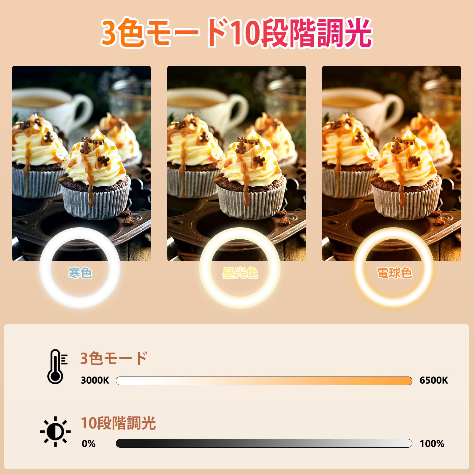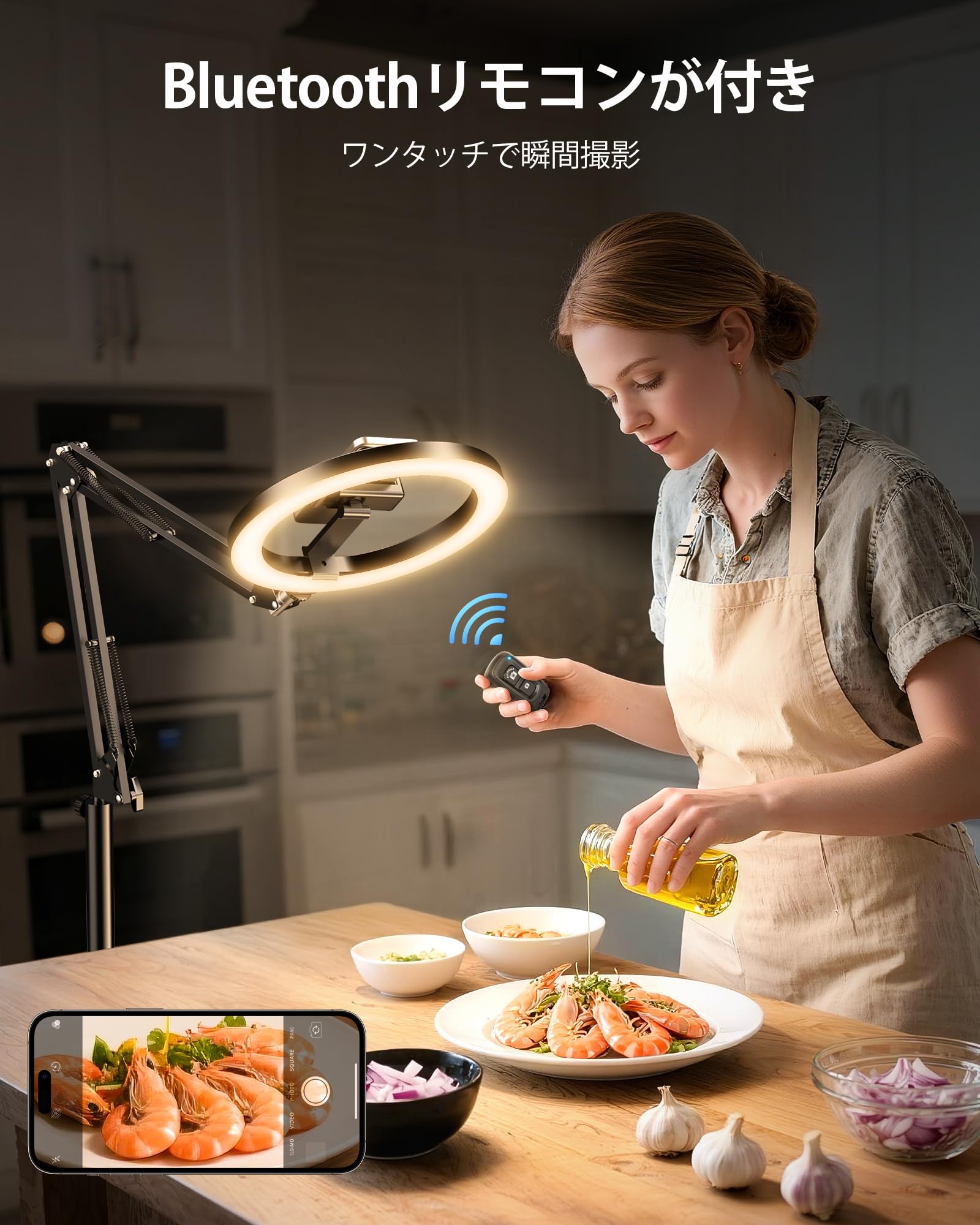 PULUZ LEDリングライトアーム式 26cm 俯瞰撮影用ライト スマホスタンド 撮影照明ライト クリップ式 高輝度ライト 3200-5600K色温度 3色モード&10段階調光 USB給電 回転可能 照明ライト 女優ライト zoom/web会議/オンライン/生放送/テレワーク/YouTube/自撮り/美容化粧/物撮りに対応の照明撮影ライト